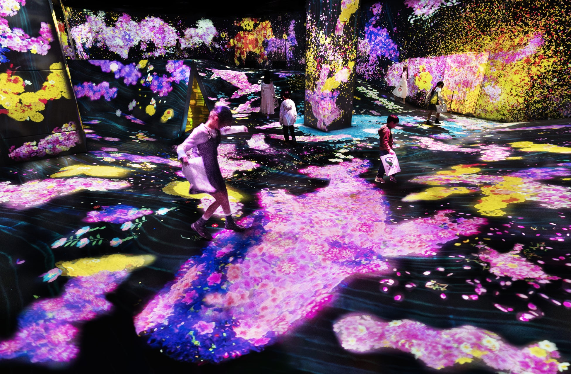 2月27日(金)から、桜が咲き渡る春の景色が登場します。みんなが描いたさまざまな生き物たちが、高低差のある立体的な地形で動き出す《鼓動する谷のグラフィティネイチャー》の空間では、生き物たちから桜の花が咲きはじめます。