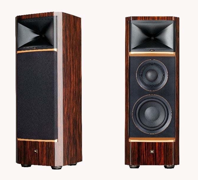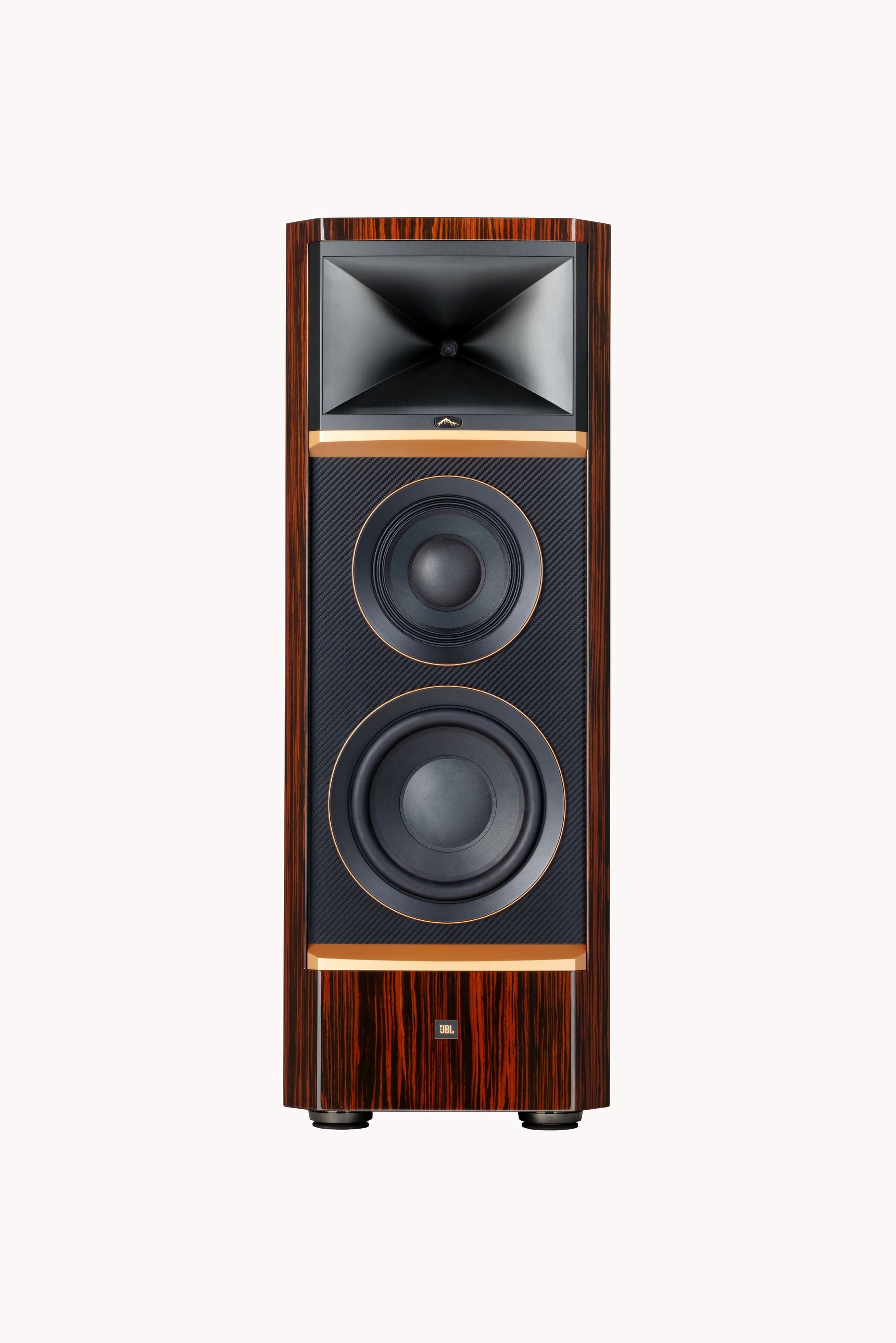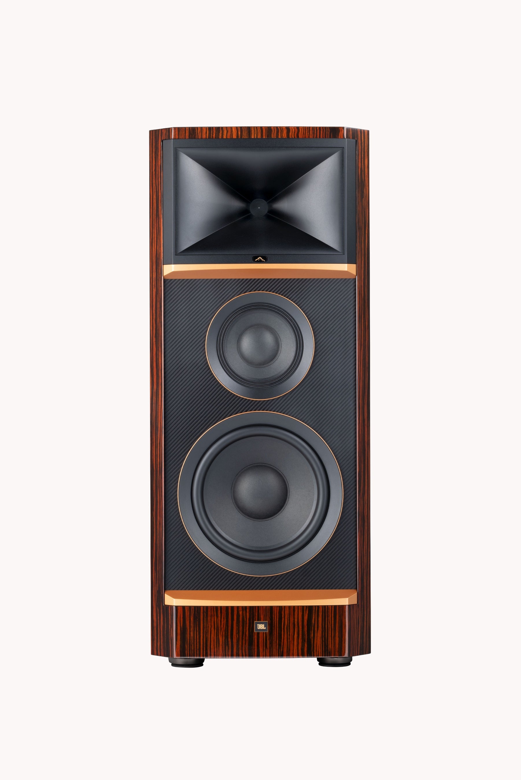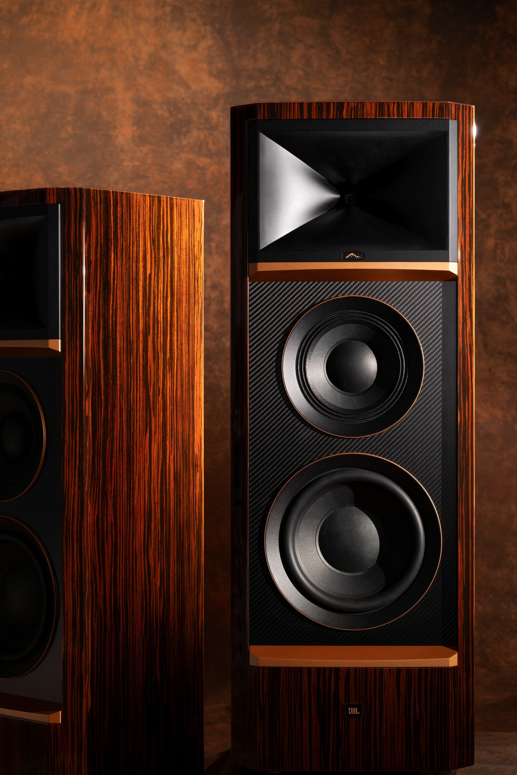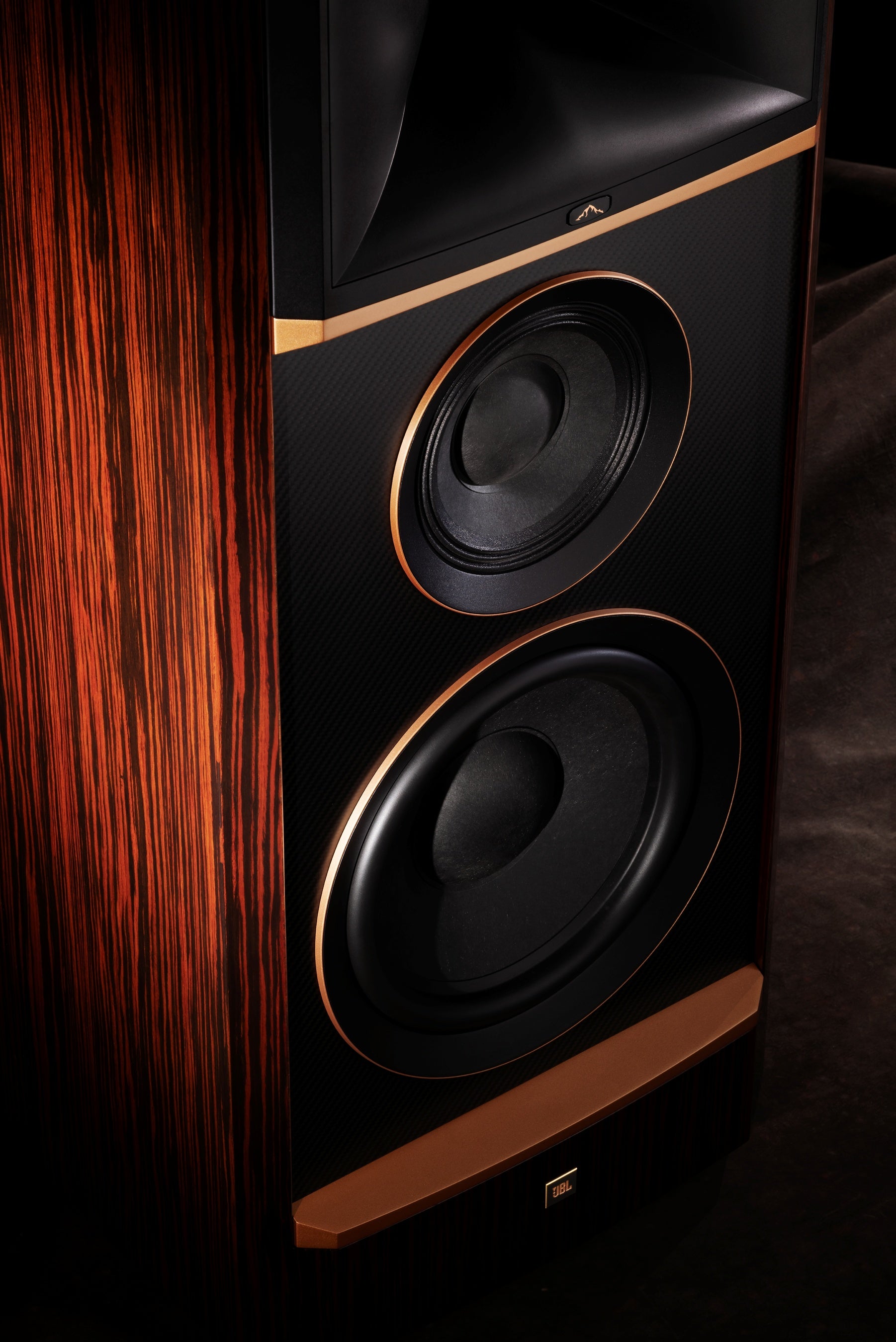 両モデルには、純度の高い音楽信号を各ユニットに届ける独自のMultiCap™クロスオーバーネットワークを搭載。柔らかな曲線を描くキャビネットは、カーボンファイバーと一体化した強固なフロントバッフルや綿密なブレーシング構造により不要な共振を排除。サミットゴールドのアクセントが映えるハイグロス・エボニー天然木突板仕上げが施され、JBLカスタムのIsoAcoustics™アイソレーションフィートを装備しています。
