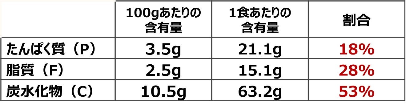 【毎日食べたい“美味しさ”で、健康的な体づくりに繋がる“PFCバランス”を追及!】 ▼PFCバランスとは…? 三大栄養素のタンパク質(P)・脂質(F)・炭水化物(C)のバランスのことで、それぞれの摂取比率が〈P:F:C=2:3:5〉となることが理想。 ※割合は摂取比率の目標量から算出した目安です。タンパク質:13~20%、脂質:20~30%、炭水化物:50~65%が目標量とされています |