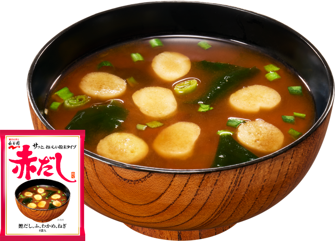 濃厚な旨味とコク、ほのかな苦みのある「赤だしみそ」と相性抜群の鰹だしのキレのあるうま味を組み合わせました。