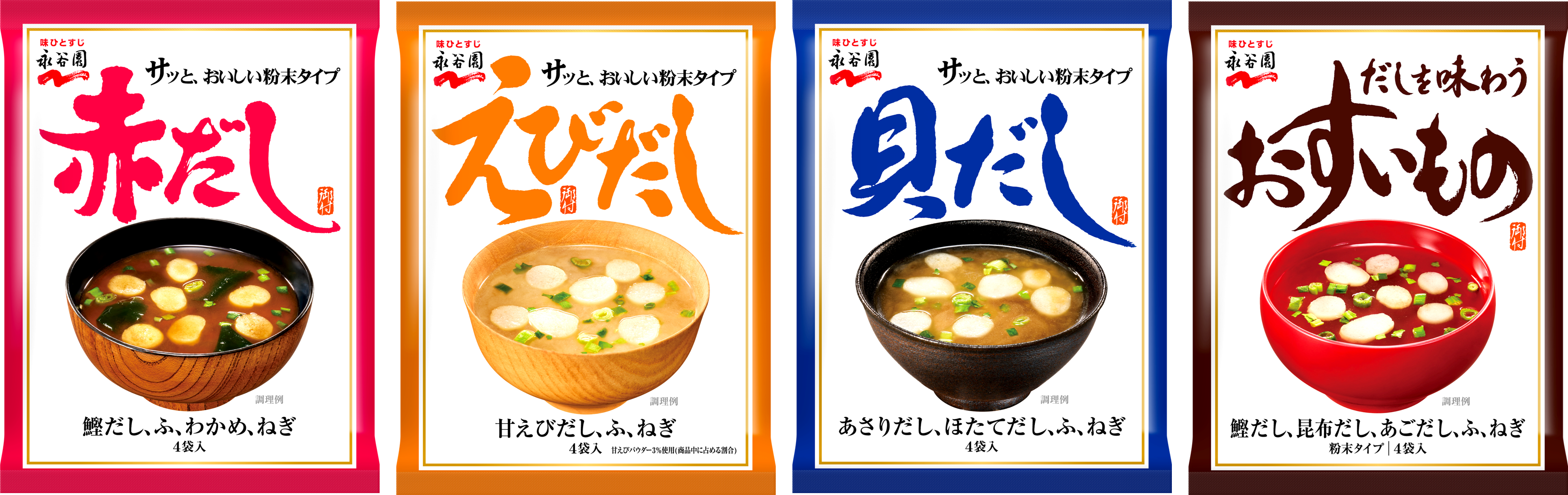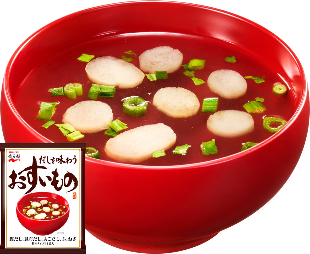 株式会社 永谷園(社長:掛谷 浩志、東京都港区)は、1967年の発売以来、59年の長きにわたりご愛顧いただいている、フリーズドライ粉末タイプみそ汁「赤だし」をリニューアルするとともに、だしを味わう汁物”シリーズとして「えびだし」「貝だし」「だしを味わうおすいもの」を2026年3月9日(月)より全国で新発売いたします(希望小売価格:えびだし・貝だしは税抜180円、赤だし・だしを味わうおすいものは税抜140円) 。