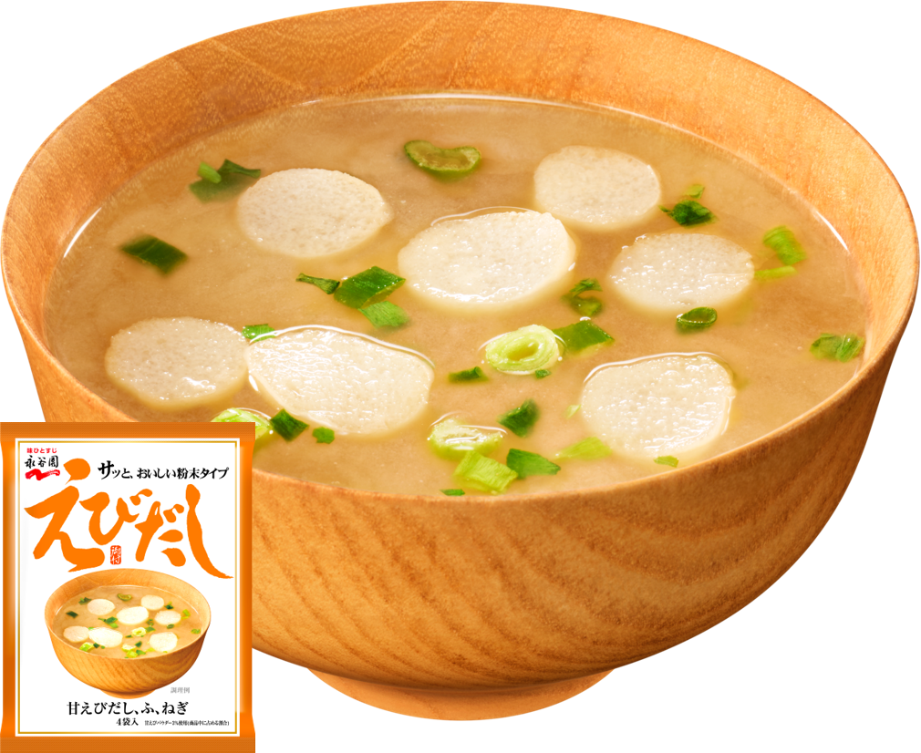 甘えびの濃厚な旨味広がるみそ汁です。甘エビの他2種のえび素材を使用することでクセになる美味しさを実現しました。