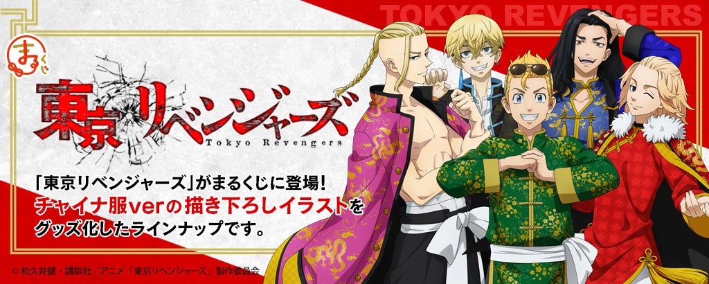 今回は「チャイナ服」をテーマに、「武道」「マイキー」「ドラケン」「場地」「千冬」の描き下ろしイラストを使用した『まるくじ』でしか手に入らない限定商品をご用意いたしました。