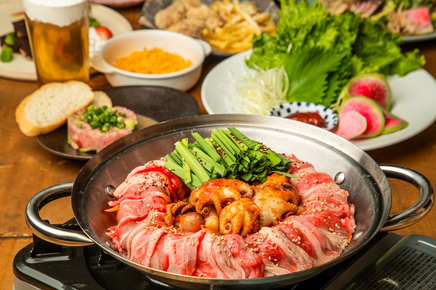 ・韓国風鍋「チュクミ&プルコギの焼き煮込みチゲ」コースプランは店内席でもご予約いただけます。