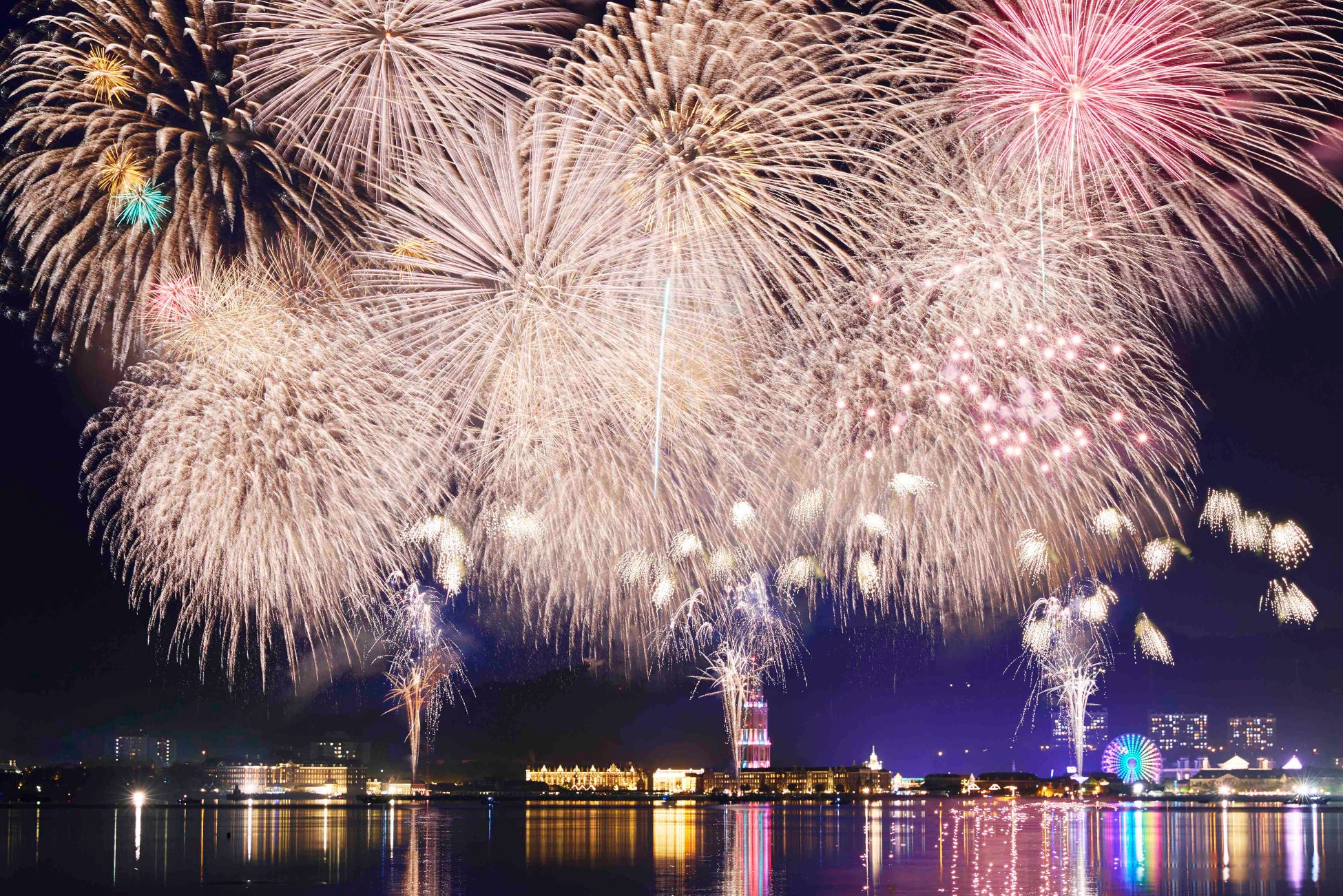 西日本最大級の22,000発が夜空を彩り、世界最高峰を誇る日本の有名花火師30社が思いを込めた一尺玉競演会や、大スターマインのクライマックスは圧巻。また、大迫力の花火を間近で楽しめる花火特別観覧席チケットや帰りの心配がいらずゆっくり満喫することができる場内直営ホテルの宿泊プランを4月22日(土)から販売開始します。