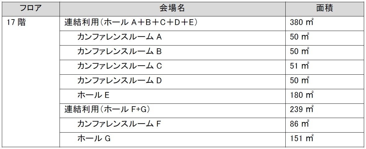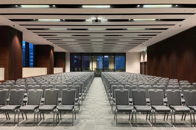 総契約面積は1,180㎡(357坪)で、施設内には天井高4.5mの開放感あふれる約400㎡の大型ホールをはじめ、用途に応じて柔軟にレイアウト変更が可能な会場を備えています。会議や研修から、株主総会、カンファレンス、記者発表会などの大規模なイベントまで、幅広いビジネスシーンに対応いたします。また、高性能な音響・照明設備や大型スクリーンを備え、多彩な演出が可能です。式典やパーティーの場にふさわしい上質な空間を提供します。