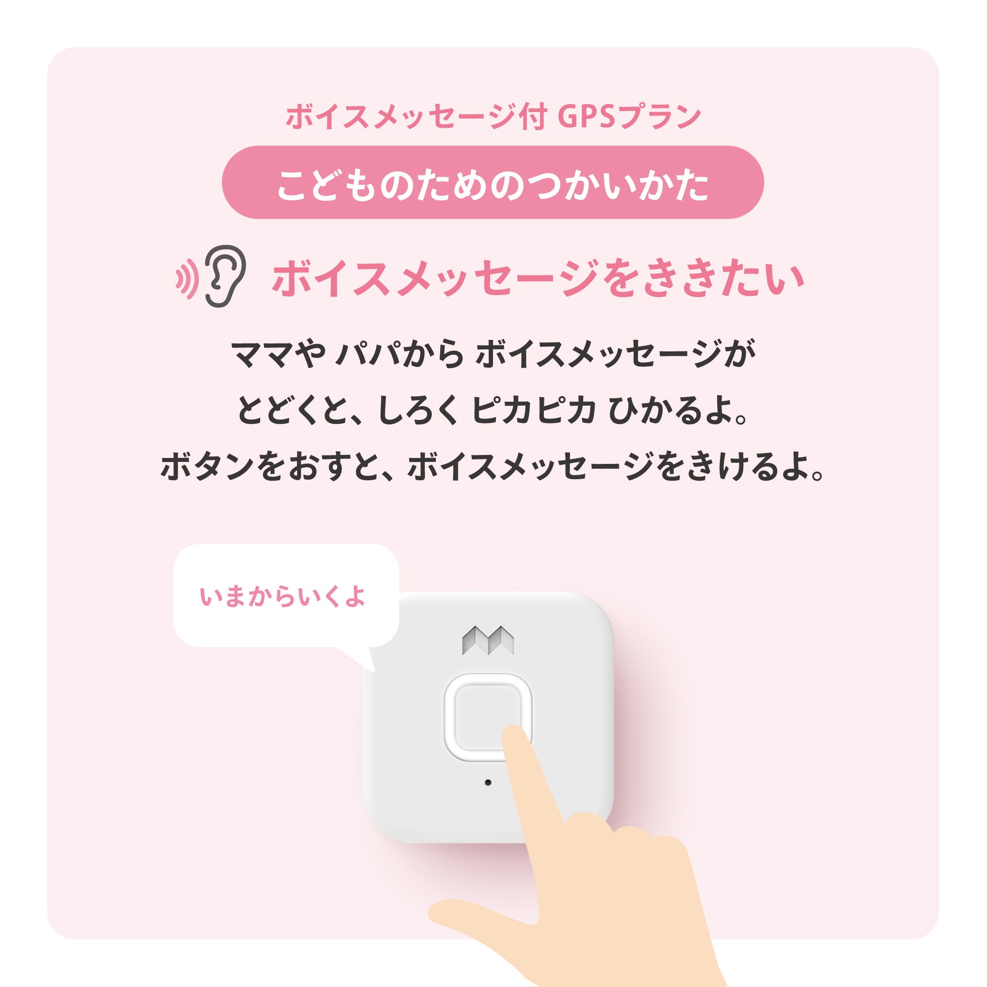 また、契約プランは音声メッセージを送受信できる「ボイスメッセージ付 GPSプラン」のほかに、「GPSプラン」も選択可能です。「GPSプラン」は「みてねみまもりGPS」の第3世代モデルで大好評の緊急時に子どもから保護者に通知できる「お知らせボタン」機能が利用できます。年齢ごとの活動範囲の広がりに合わせて契約プランおよび機能を変更するなど、子どもの成長に合わせた「みまもり」を提供します。