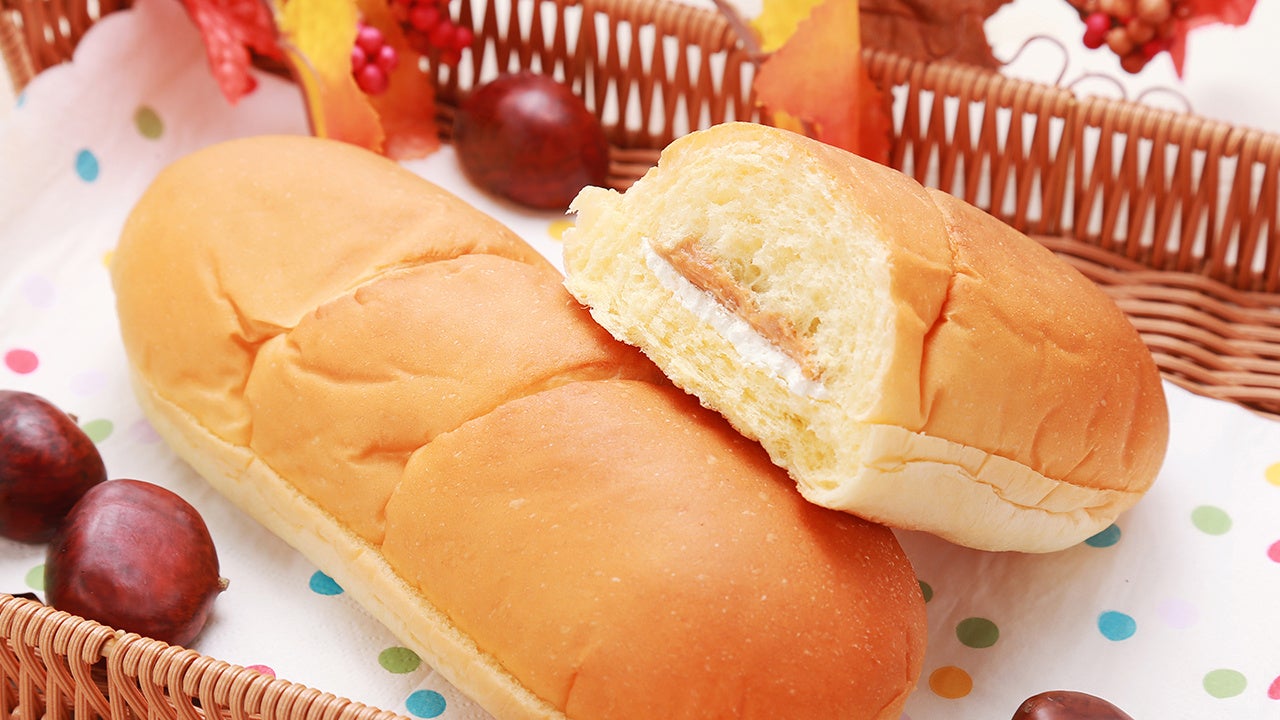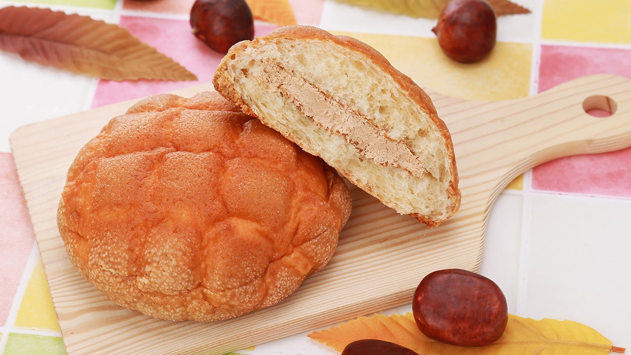 マロン風味の生地を被せて焼いたパンに、マロン風味クリームをサンドしました。秋の味覚が楽しめる商品です。