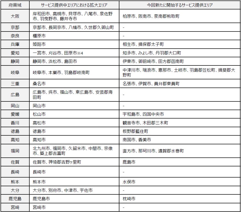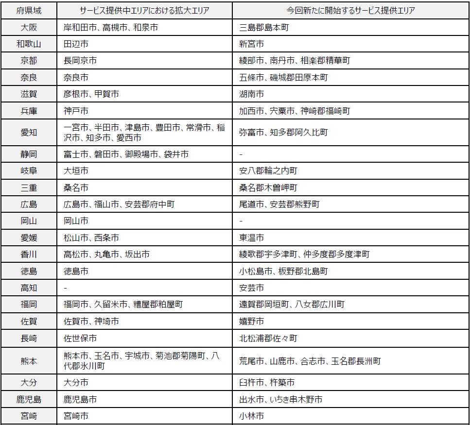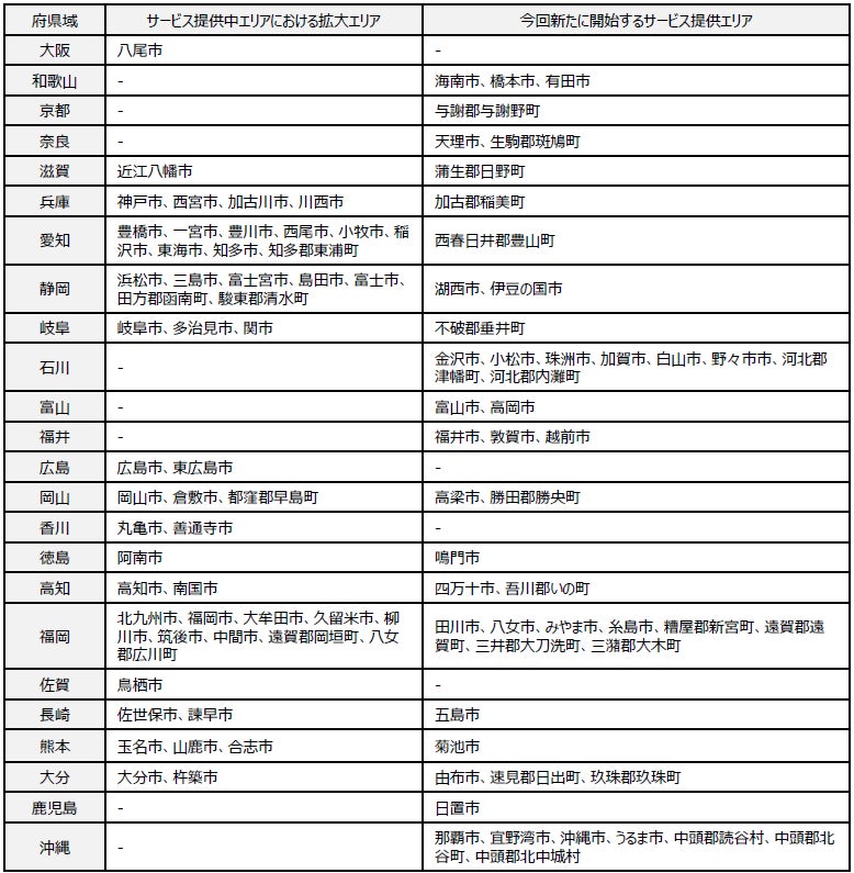1.サービス提供拡大エリア及び提供開始時期(予定)
