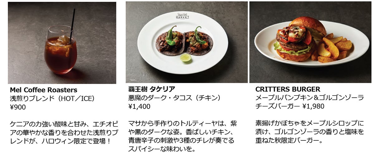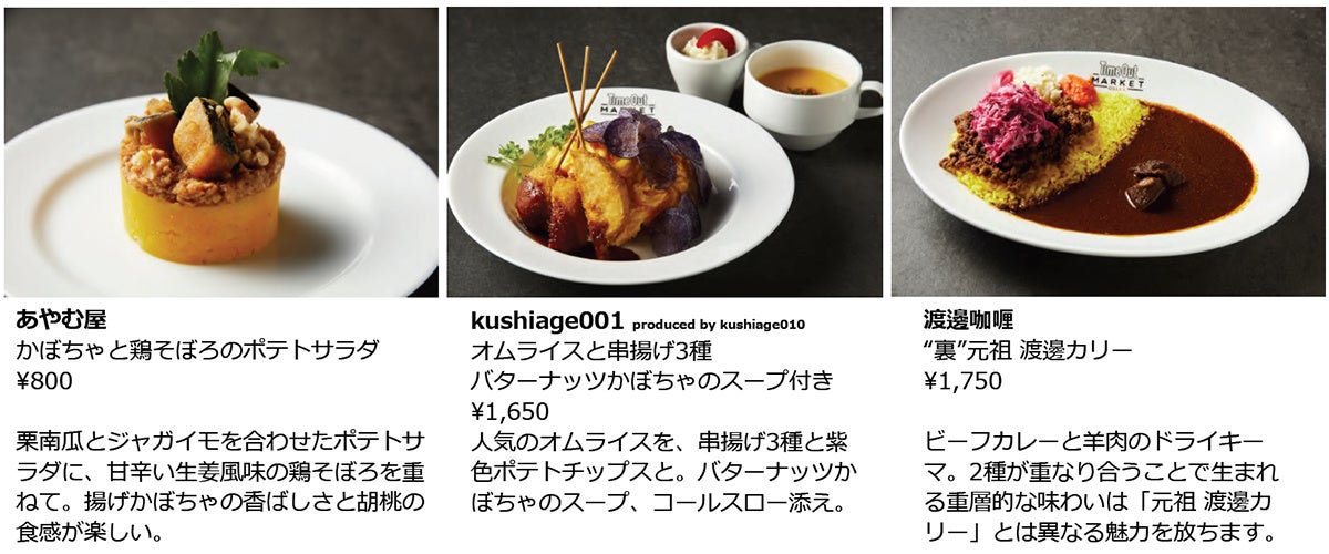 マーケットの各店舗から、秋の味覚や遊び心あふれる限定メニュー18品が登場!