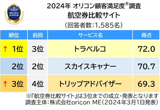 2024年 オリコン顧客満足度®調査 航空券比較サイト