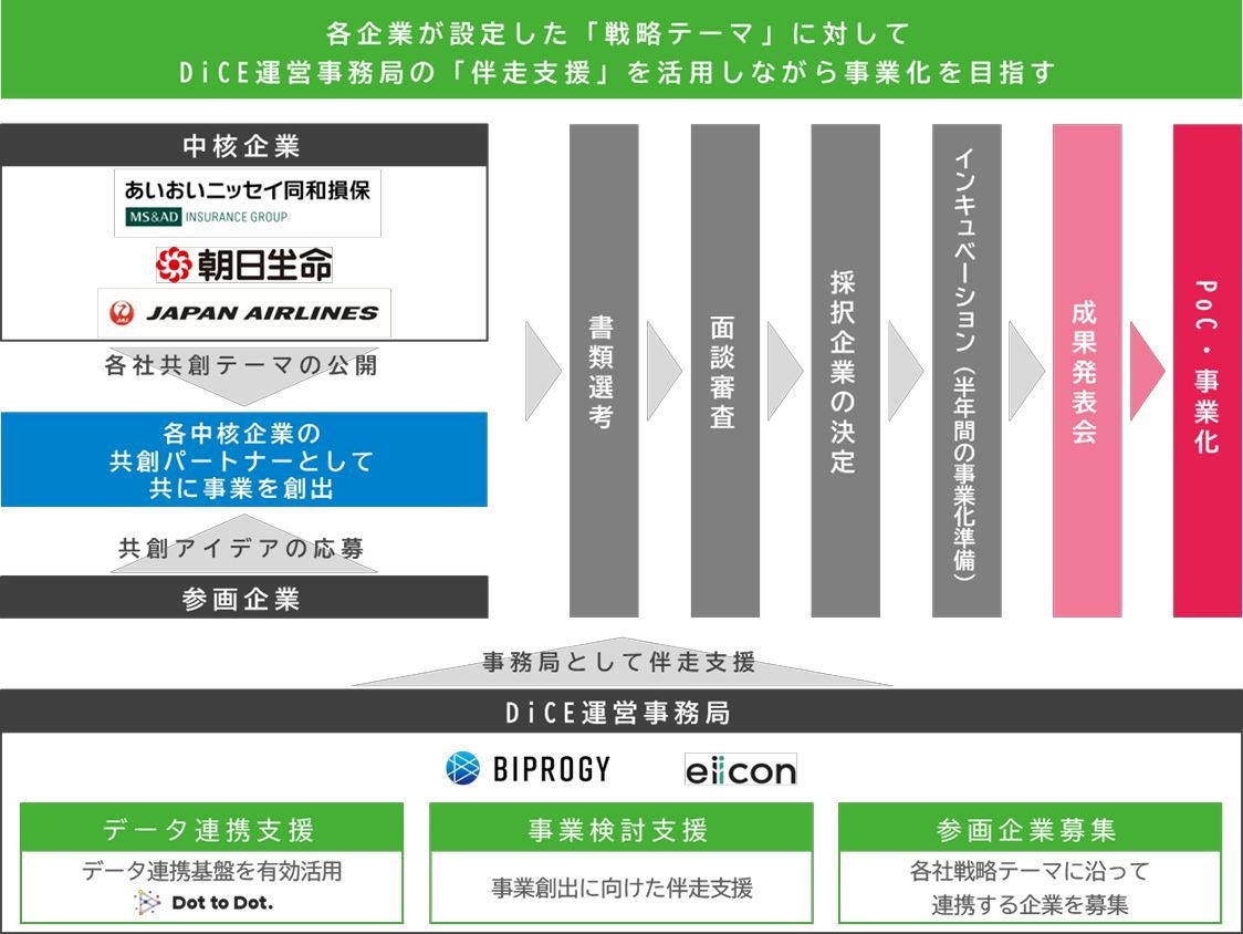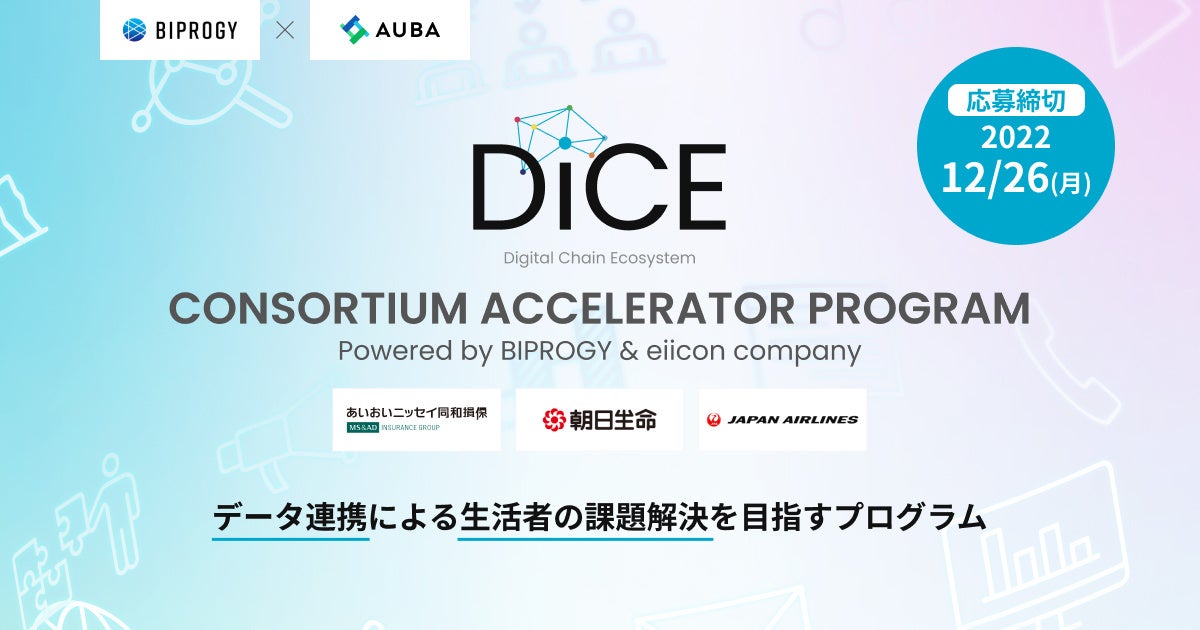 『DiCE』に賛同するeiiconは、BIPROGYとともに『DiCE Consortium accelerator program 運営事務局』として協力しております。