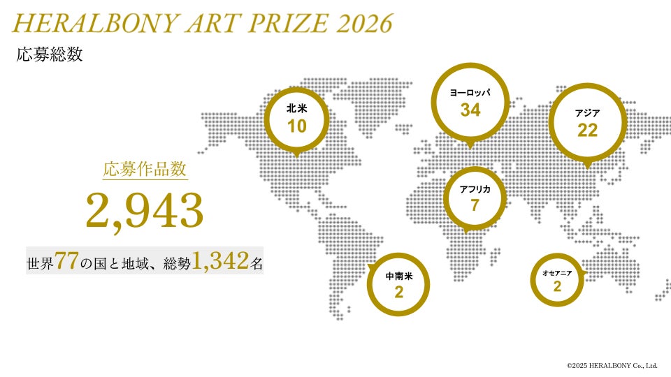 国際アートアワード「HERALBONY Art Prize 2026」、世界77の国と地域から作品が寄せられ、応募作品数が過去最大の約3,000点。