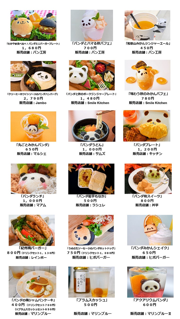 10月1日(土)からはハッピーパンダフェス「収穫祭」を開催し、パーク内13店舗で和歌山県産の食材を使った18種類の「パンダフェス飯」を販売いたします。「パンダフェス飯」を食べてパンダ沼にハマりましょう!
