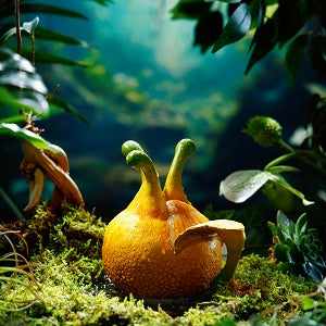 赤道付近の熱帯雨林に生育。果皮は上下で手触りが異なるのが特徴的で、角状の構造はスコールなどの豪雨を受け流す。果実は自らの熟成を促す芳醇な香りのガスを多く蓄え、開花から2カ月程度で20cmほどの大きさに成長する。雨が止んだ数少ない晴れ間に、完熟した実は地上からの高さ5~6mに浮かんで、ゆらゆらとジャングルの中を浮遊し――