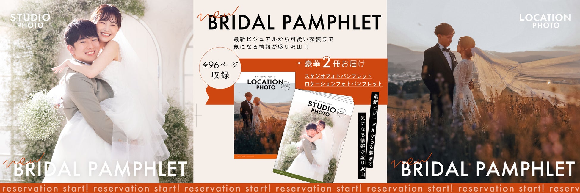 今回vol.5となるブライダルパンフレットでは、"スタジオフォトパンフレット"と"ロケーションフォトパンフレット"の計2冊を請求してくださったお客様へお届けいたします。