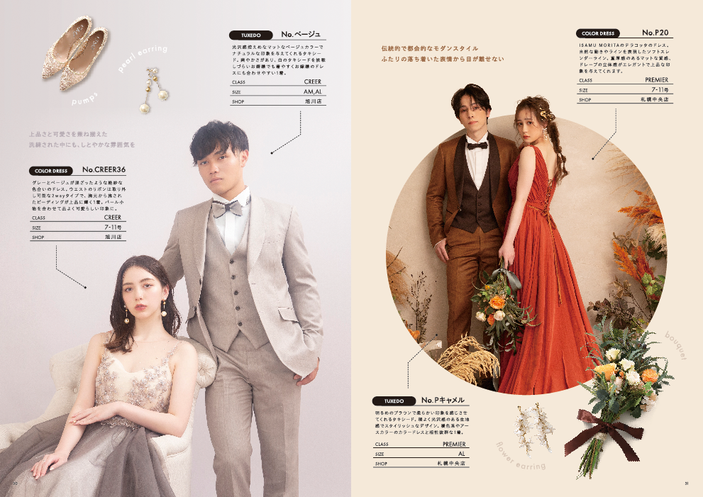 衣装は全店舗に常に最新を取り入れ、カラーやデザイン種類豊富に取り揃えております。