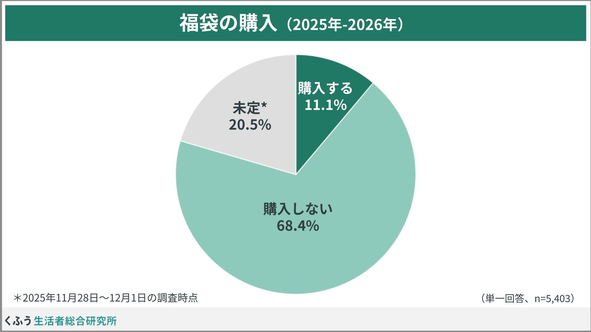 生活者と社会の生活満足度向上に資する研究・発信を行うくふう生活者総合研究所(以下、くふう総研)は、生活者5,403名を対象に「福袋」に関する調査を実施しました。