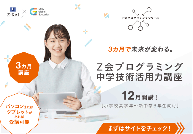 ・「Z会プログラミング中学技術活用力講座 教科実践編」は、株式会社Z会と株式会社ソニー・グローバルエデュケーションの協業による講座です。