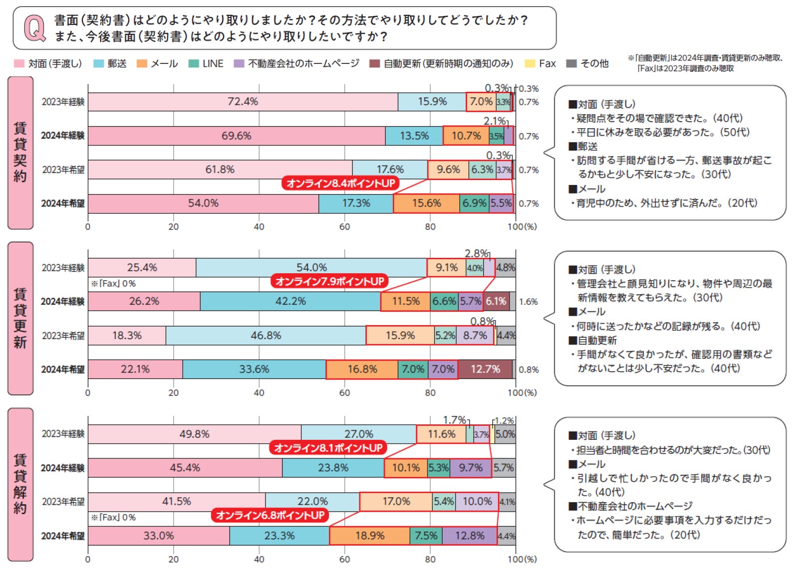 ■賃貸更新・解約で、オンライン経験者が前年比約8ポイント増加