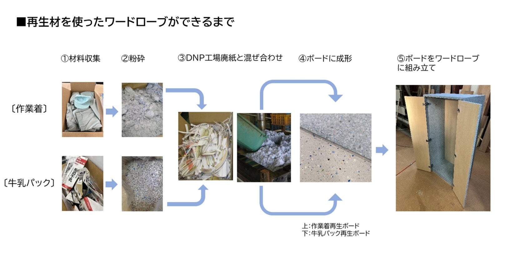 今回DNPは、本イベントに参画し、再生材で作成したボードを活用した新しい製品として、衣服を収納するワードローブを開発・提供するとともに、来場者に向けた情報発信を行います。