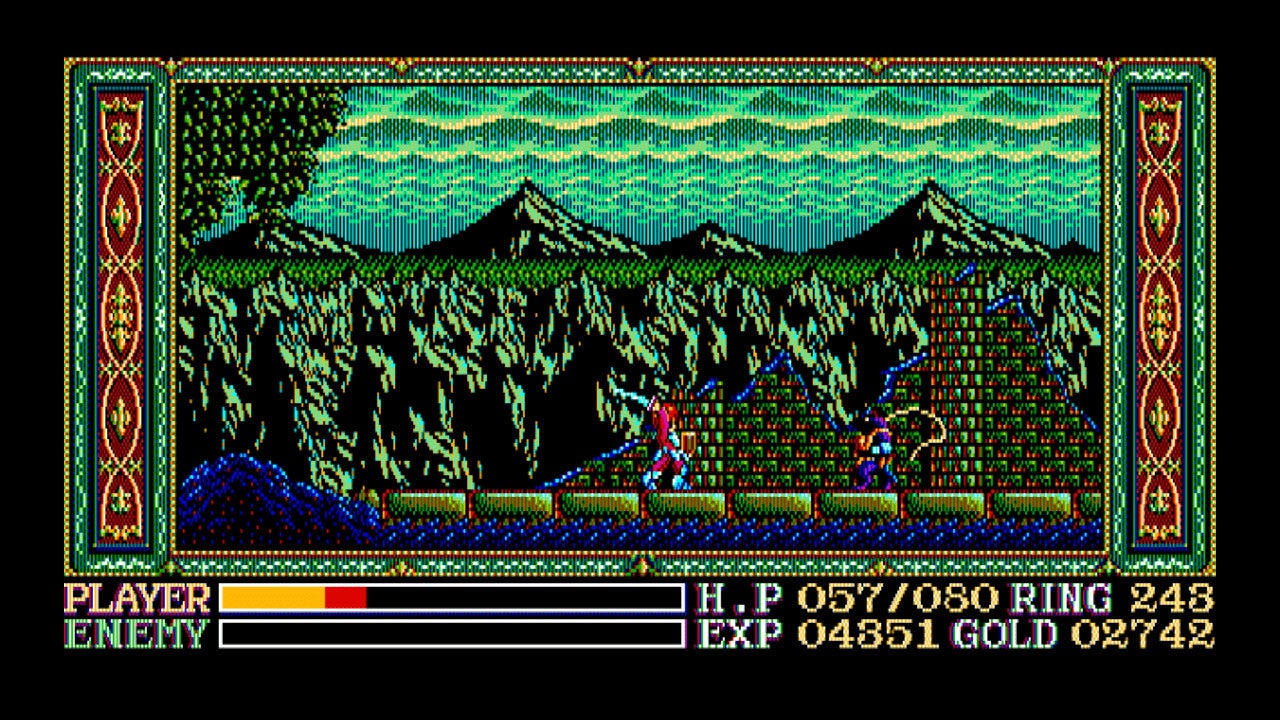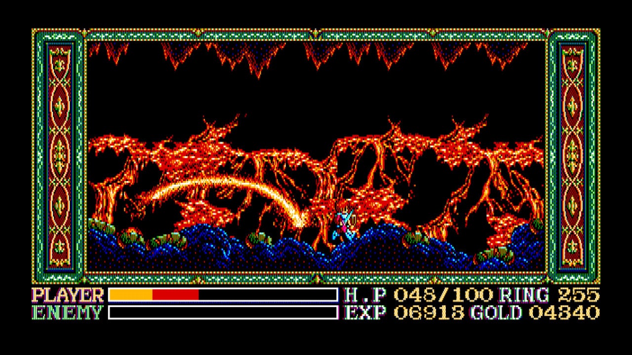赤毛の冒険家アドルとなり、半キャラずらしで敵を倒しながらエステリアの国を冒険しよう!