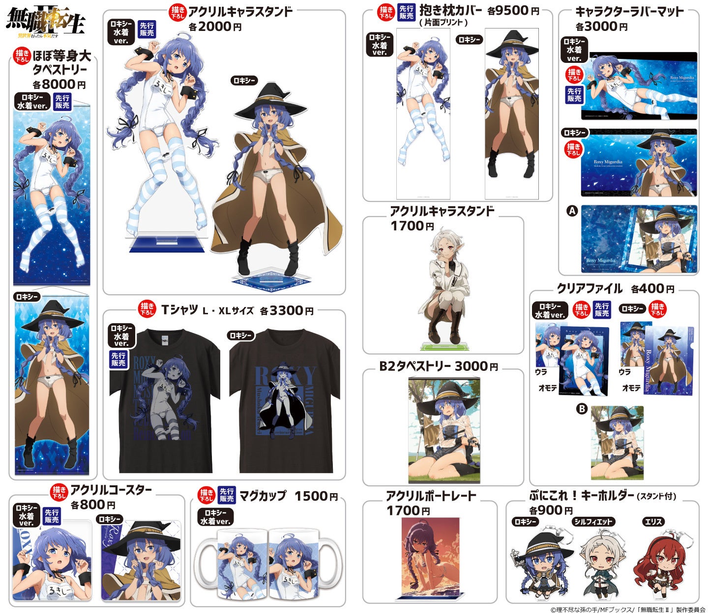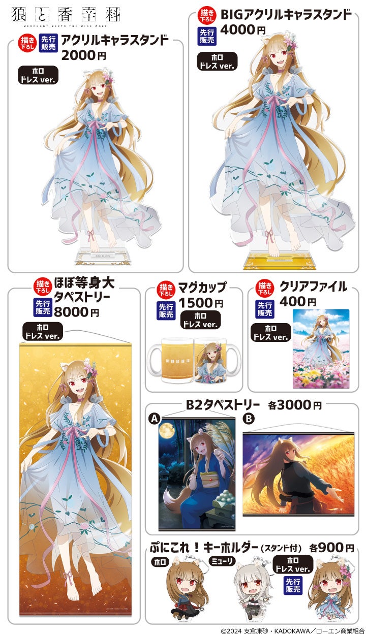 『無職転生 ~異世界行ったら本気だす~』『時々ボソッとロシア語でデレる隣のアーリャさん』『デート・ア・ライブ』『狼と香辛料 MERCHANT MEETS THE WISE WOLF』『ぼっち・ざ・ろっく!』『魔法少女にあこがれて』など描き下ろし、先行販売を含む、人気26タイトル、300種以上の商品を販売します。