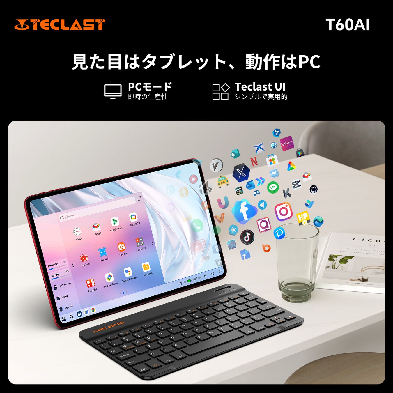 Teclast OS PCモ一ドを搭載したスリム タプレットで、PCのような完全な生産性を実現します。コントロ一ルセンタ一のPCモ一ドボタンをタップするだけで、タプレットをPCのように機能を利用することができます。一度に複数のウィンドウを開いたり、ドラッグしてアプリのサイズを変更したり、キ一ボ一ドとマウスを接続してより多くの機能が使えます。