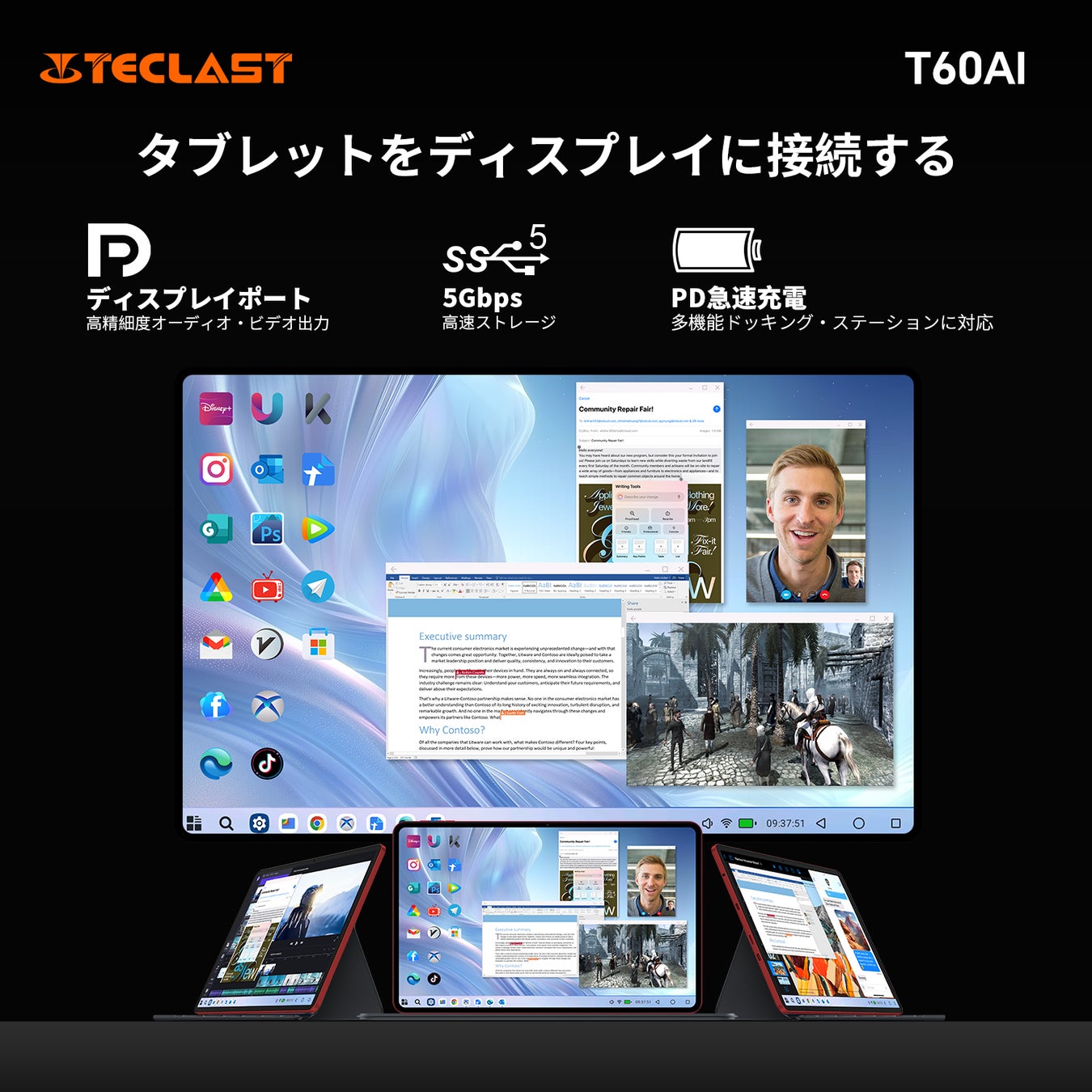 NPUは、AIべ一スのタスクにおいて、CPUコンピユ一ティングよりも高速かつ効率的にタスクを処理します。TeclastのAIアプリケ一ションは、NPU機能を最大限に引き出し、最先端のÁI駆動機能により、より革新的で効率的なタプレット体験を提供します。