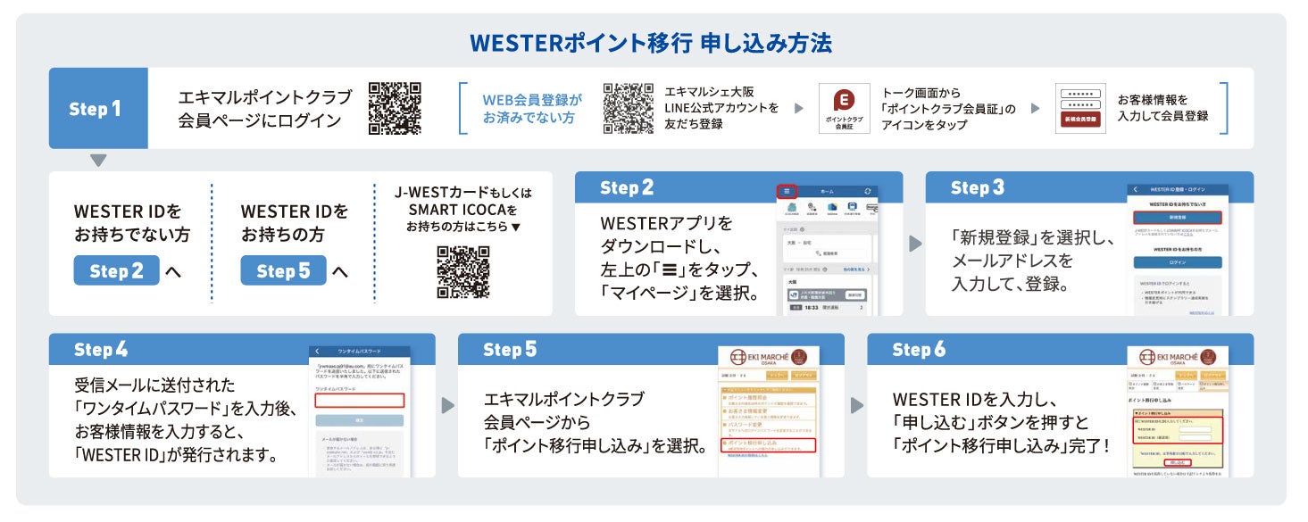 JR大阪駅桜橋口すぐの駅ナカ商業施設「エキマルシェ大阪」(開発運営:株式会社ジェイアール西日本デイリーサービスネット)が提供する「エキマルポイントクラブ」は、2023年7月1日(土)から、JR西日本グループ共通の新たなポイントサービス「WESTERポイント」に移行します。