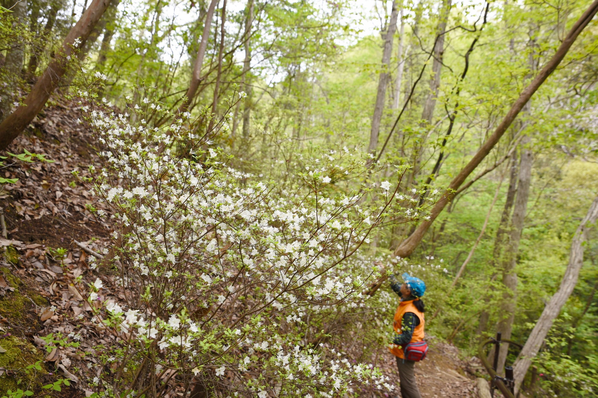 2016年4月に初めて一般公開し、今年で10回目。見頃を迎えたこの時期、急斜面に咲くシロバナウンゼンツツジの白や薄いピンクの小さな花が咲きはじめ、訪れた人を楽しませています。