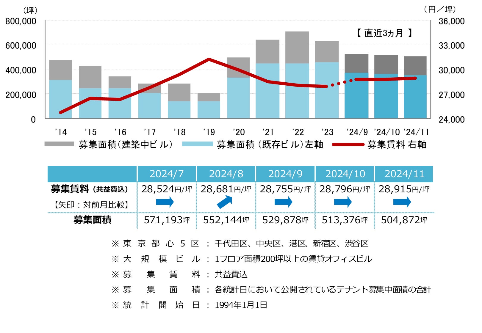 東京都心5区 大規模ビル 募集賃料&募集面積