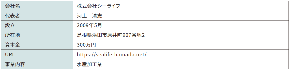 日本海有数の港町である島根県浜田市の株式会社シーライフは、天然の上質な魚ならではの「本物の旨味」を引き出した製品が人気の水産加工業者です。限りある資源を有効に活用するため未利用魚を使用した日替わりの缶詰「今朝の浜」や、イタリアンシェフ監修による洋風干物など、あらたな価値を生み出す企画開発力も大いに話題を呼んでいます。