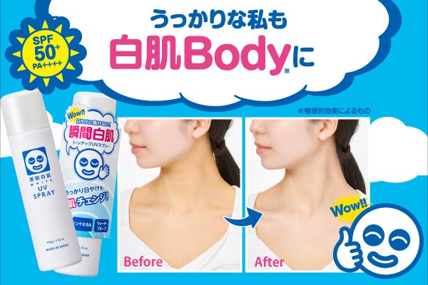「あっ…日焼けしちゃった!」うっかりな私も白肌Bodyに♪『透明白肌 ホワイトUVスプレー』が今年も登場