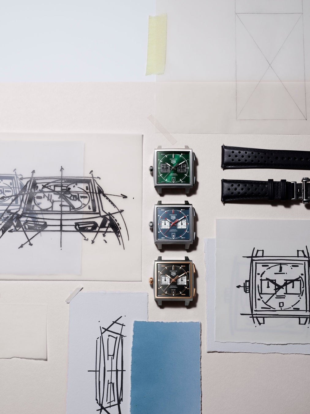 これほどまでに画期的なムーブメントには、それにふさわしい革新的なタイムピースが求められました。ホイヤーは、この新しいムーブメントを収納するため、数年前に発表された「オータヴィア」や「カレラ」といった既存のコレクションのデザインを刷新すると共に、この歴史的節目を象徴する、先見性に満ちた未来志向のモデルも誕生させます。それが「モナコ」です。