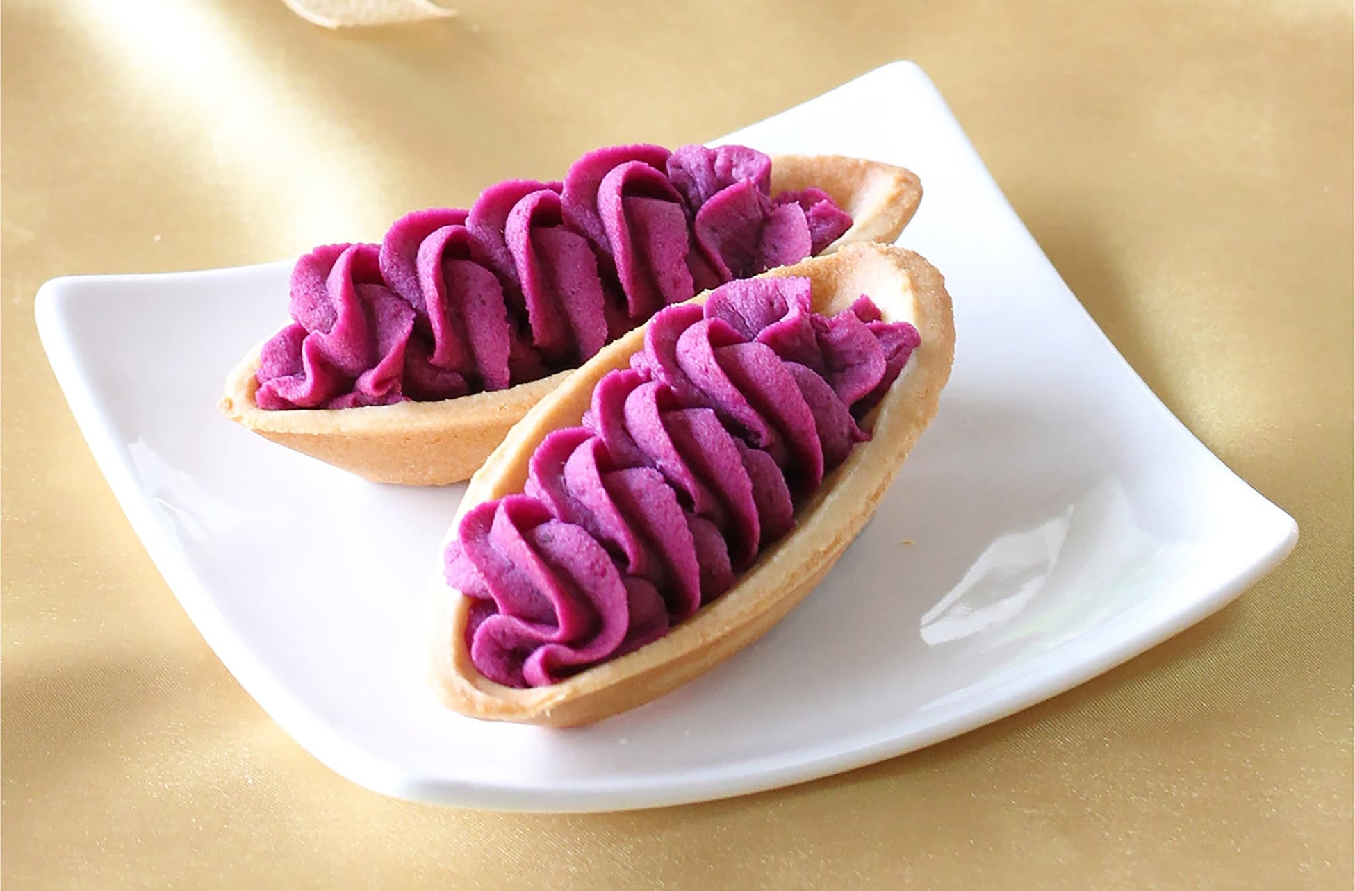 沖縄県産紅芋をたっぷり使用した「べにいもたると」は、甘さの中にも紅芋本 来の風味が感じられる一品で、世代を超えて人気が高い沖縄土産の超ベス トセラー。ふんわりとした食感がおいしいべにいもたると。冷やして食べるとク リーミーな味わい。オーブントースターなどで焼くとほくほく感が味わえるな ど、食感の変化も楽しめます。