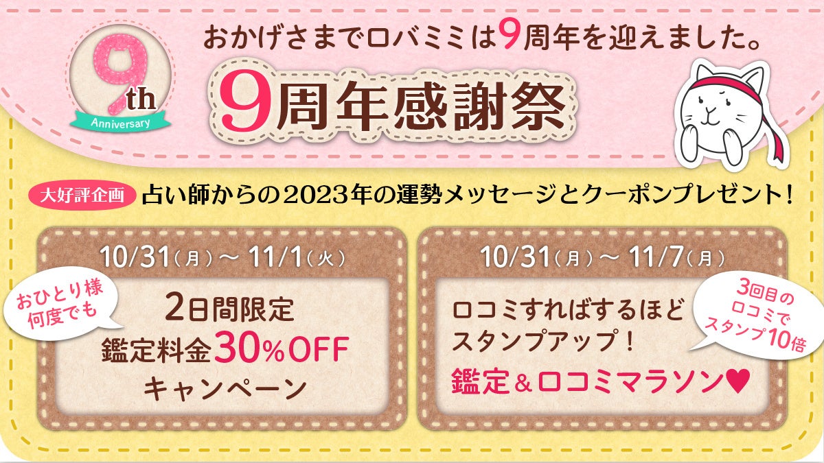 ※2022年10月31日(月)0:00より前に予約した鑑定は対象外となります。他のキャンペーン・クーポンとの併用は不可。