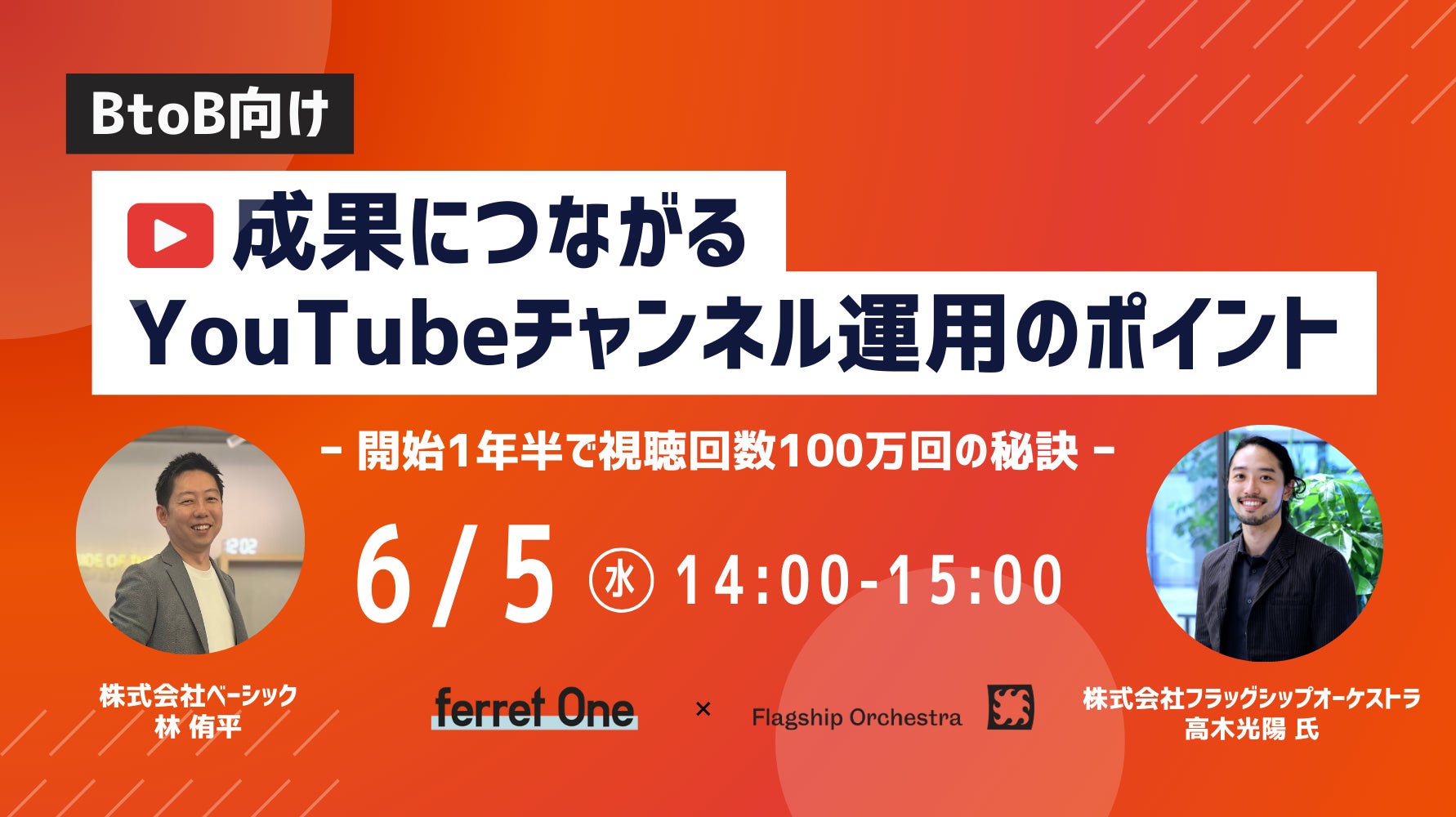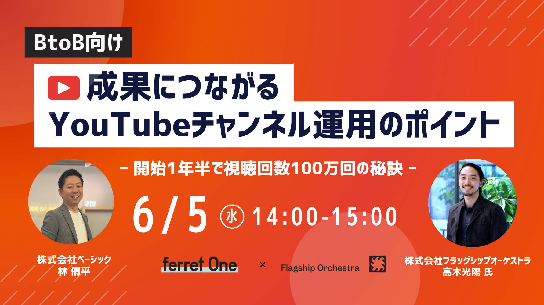 ベーシック、6/5(水)14時よりオンラインセミナー「BtoB向け!成果に繋がるYouTubeチャンネル運用のポイント 」を開催~開始1年半で視聴回数100万回の秘訣~
