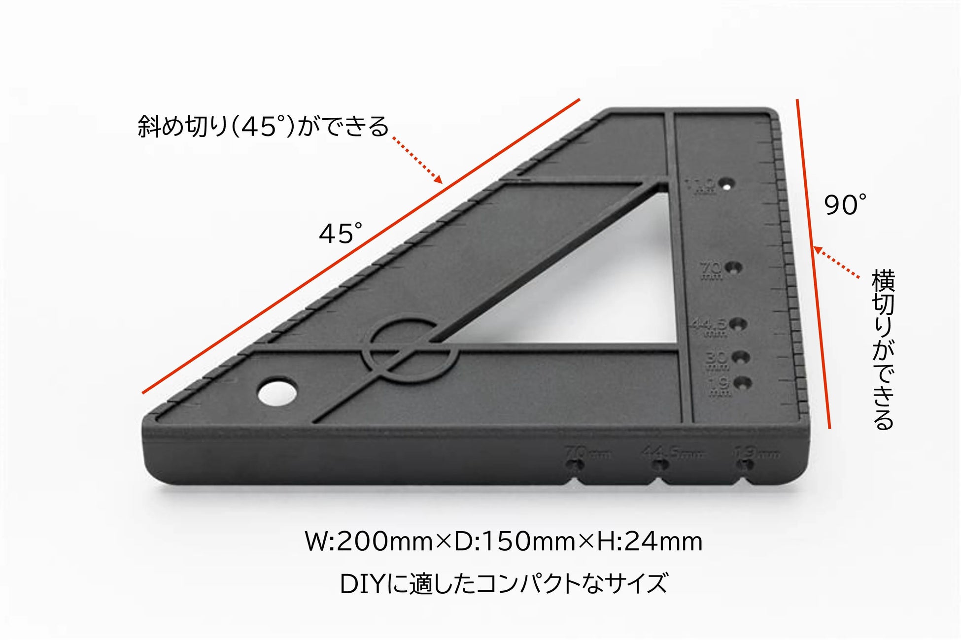 プロの職人が使う便利な道具をDIY初心者向けにアレンジした商品です。DIYで最も多く使用される2×4材(ツーバイフォー材)の加工に特化し、使いやすい機能とコンパクトなサイズにこだわりました。丸鋸でまっすぐに切断するためのガイドだけでなく、木材切断後にもビス止めのマーキングや罫書ができるガイド付き。初心者でも楽しく簡単に、そして安全に作業ができることを目指しました。なお、「丸鋸ガイド定規」は「グッドデザイン賞2024」に続き、2つ目のデザイン賞受賞です。