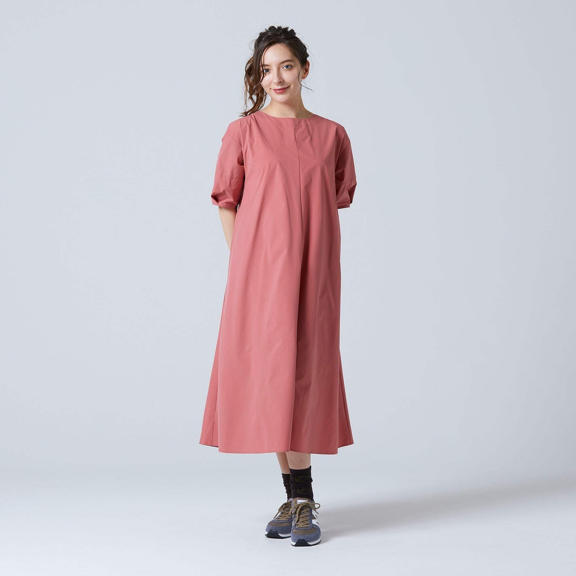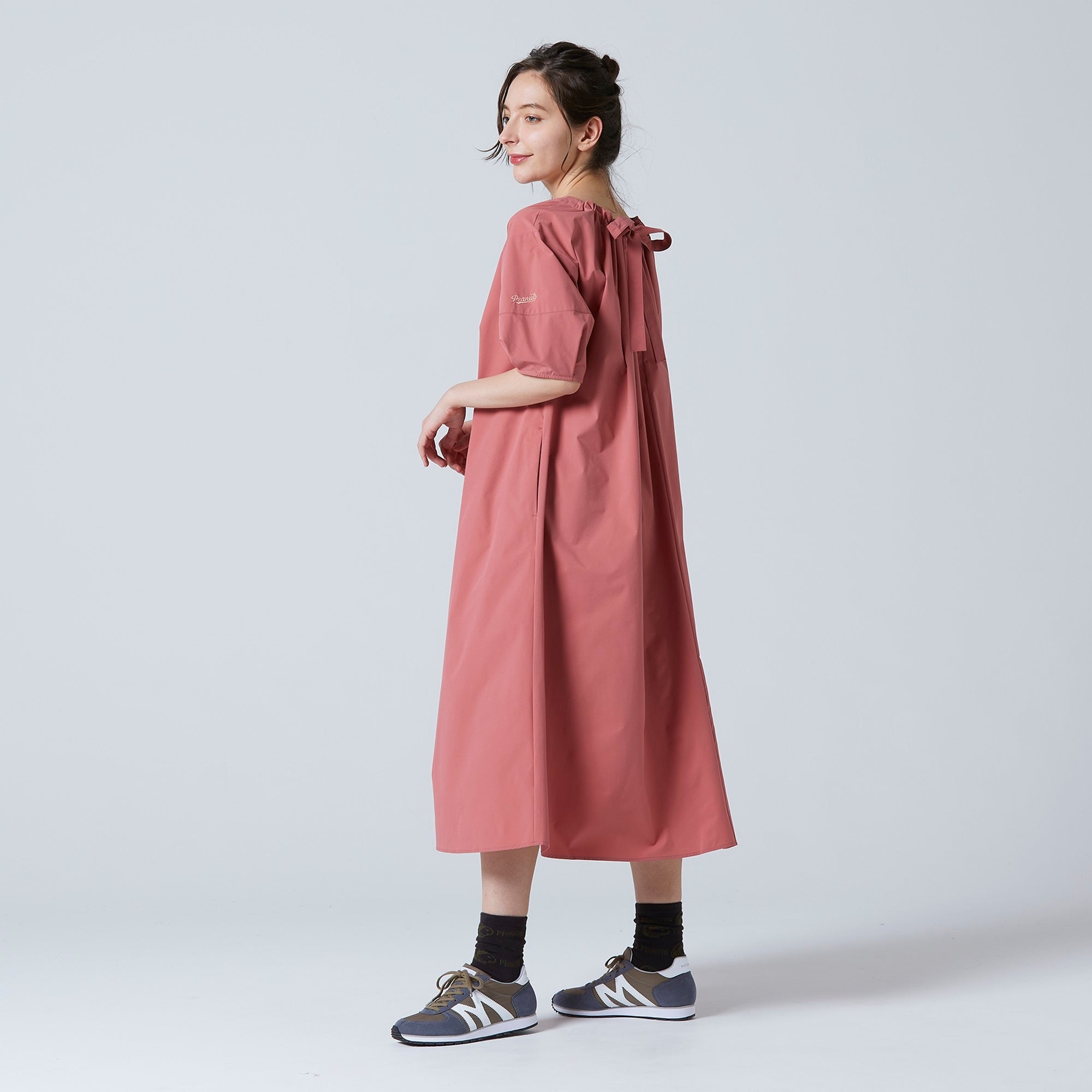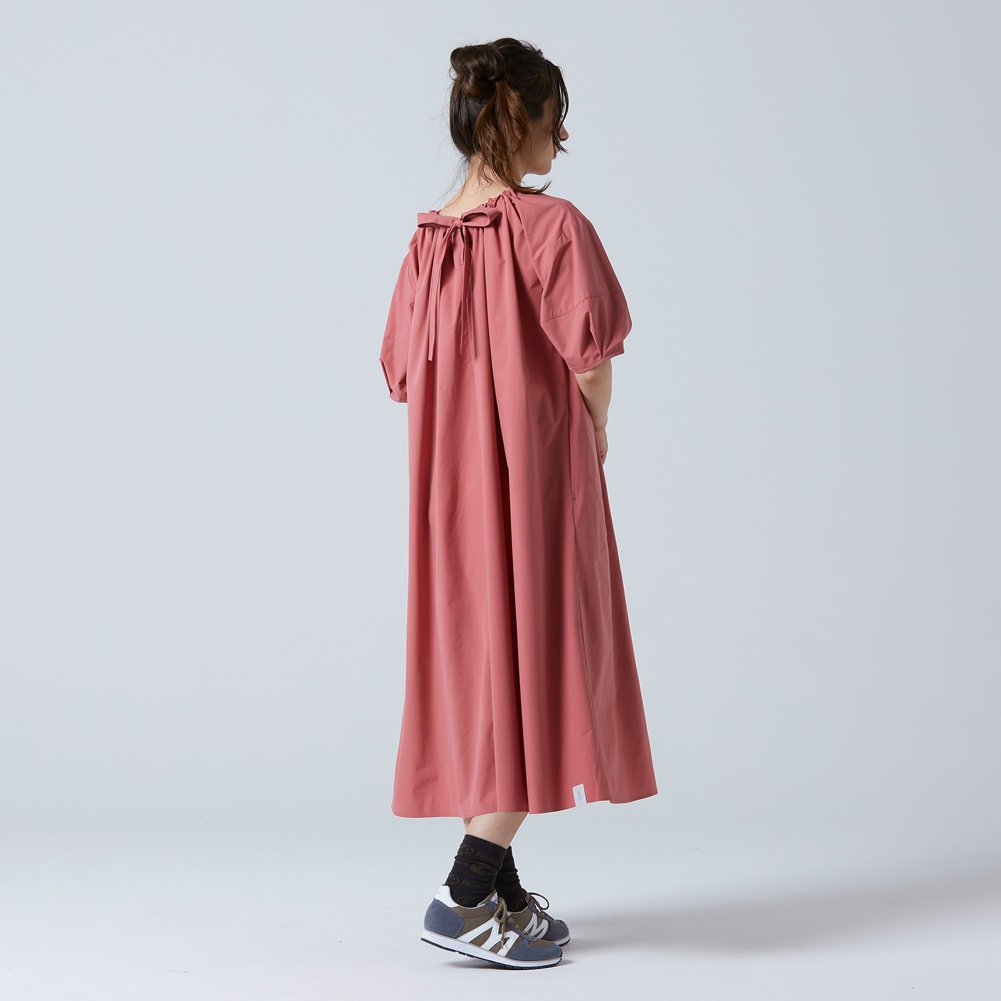 20回洗濯しても撥水性が持続する素材を採用。ストレッチ性も兼ね備えた素材を使用したワンピースです。雨の日や、水遊びなど夏のレジャーシーンでも着用いただけるロング丈のワンピースです。パフスリーブや、襟周りをリボンで結ぶなどキュートなデザインも特長です。