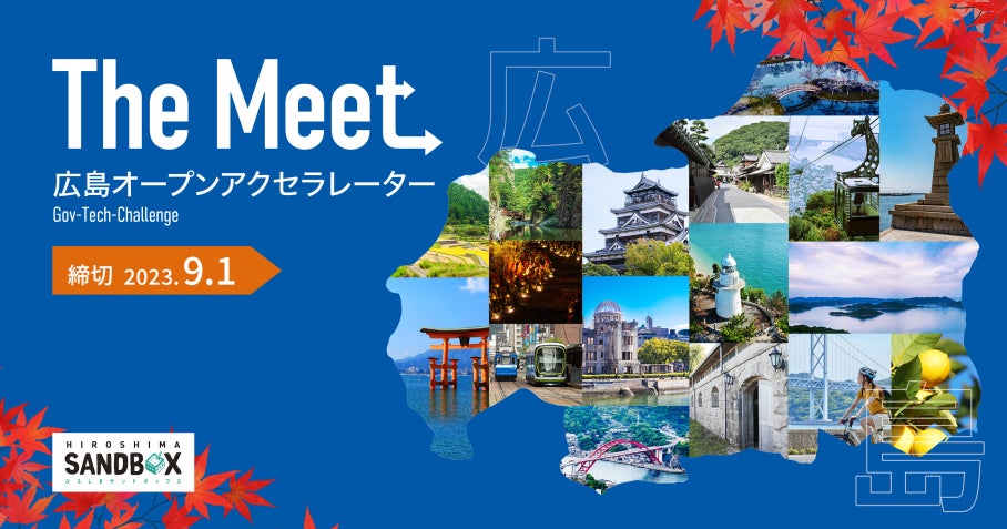 広島県では,新たな挑戦を推進する「ひろしまサンドボックス」において、広島県内の市町と県内外のスタートアップ企業のマッチングを行い、両者が一緒になって地域課題・行政課題等の解決を目指す取組として、「The Meet 広島オープンアクセラレーター Gov-Tech-Challenge」を実施します。