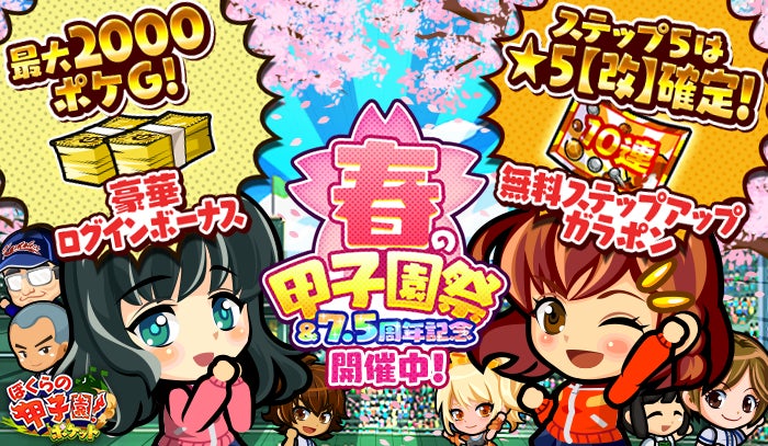 株式会社カヤック(本社:神奈川県鎌倉市、代表取締役CEO:柳澤大輔、東証マザーズ:3904、以下「カヤック」)は、現在好評配信中の共闘スポーツRPG『ぼくらの甲子園!ポケット』(iOS/Android端末向け)で、「春の甲子園祭&7.5周年記念」キャンペーンを3月1日(火)より実施いたします。