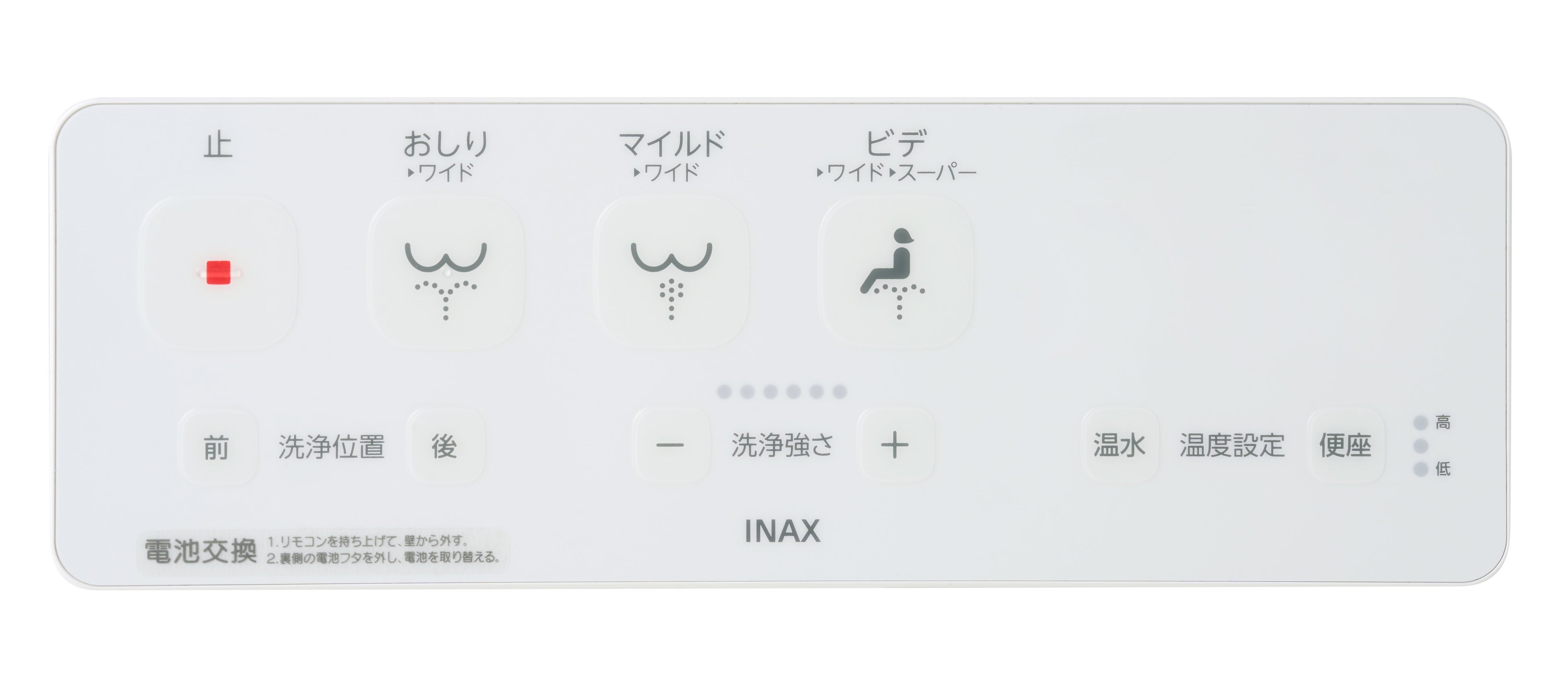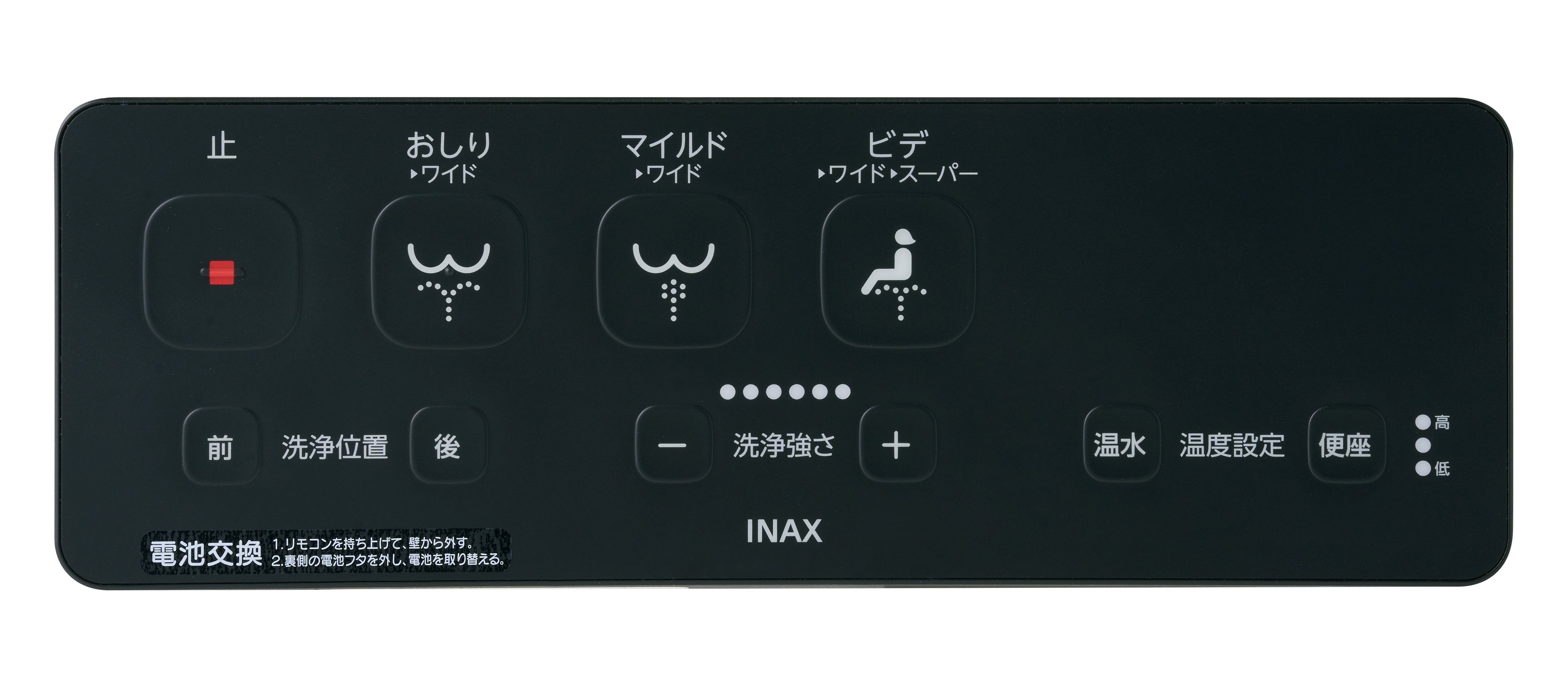 空間になじむ、シンプルでフラットなデザインのリモコンです。便フタカラーによってセットされます。(便フタがノーブルブラックの場合のみ、リモコンはブラックになります。)