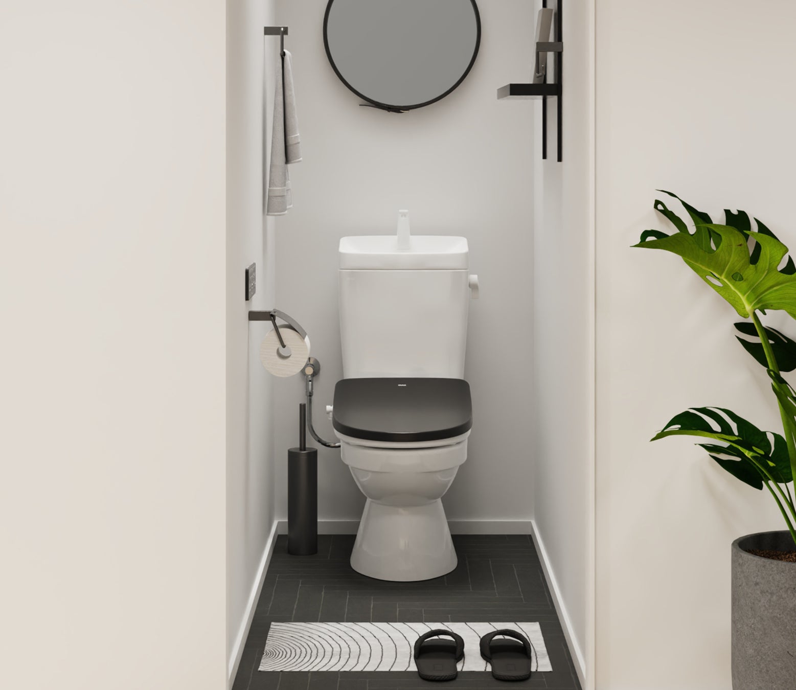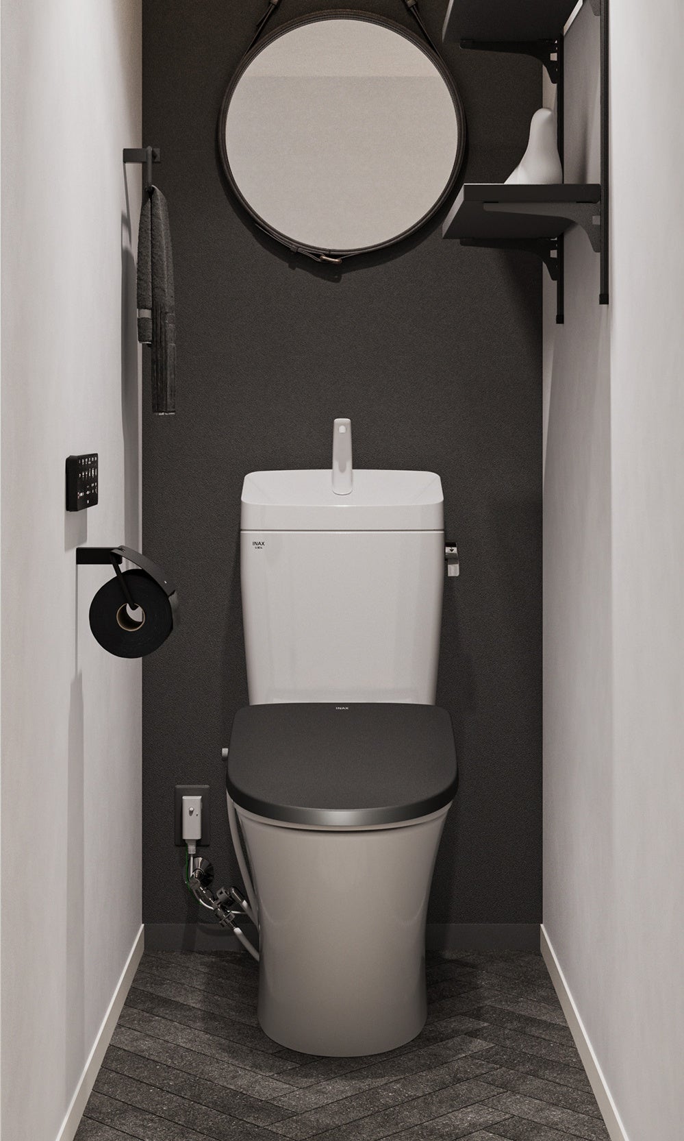 便座と合わせて、紙巻器やインテリア等の周辺アイテムも交換することで、ブラックで統一したシックな空間や、インテリアと調和したグレージュ調の空間などを様々な空間にコーディネートでき、部屋のイメージを大きく変えることができます。
