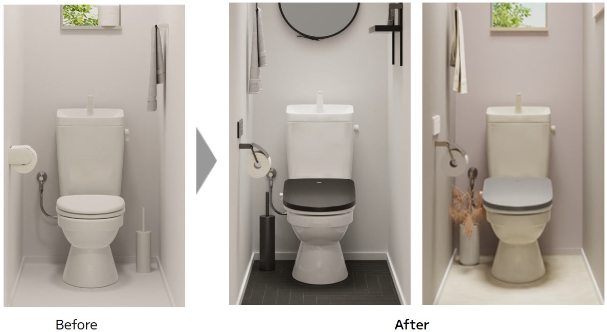 便座と周辺アクセサリーの交換で、丸ごとリフォームしたようなトイレ空間を実現