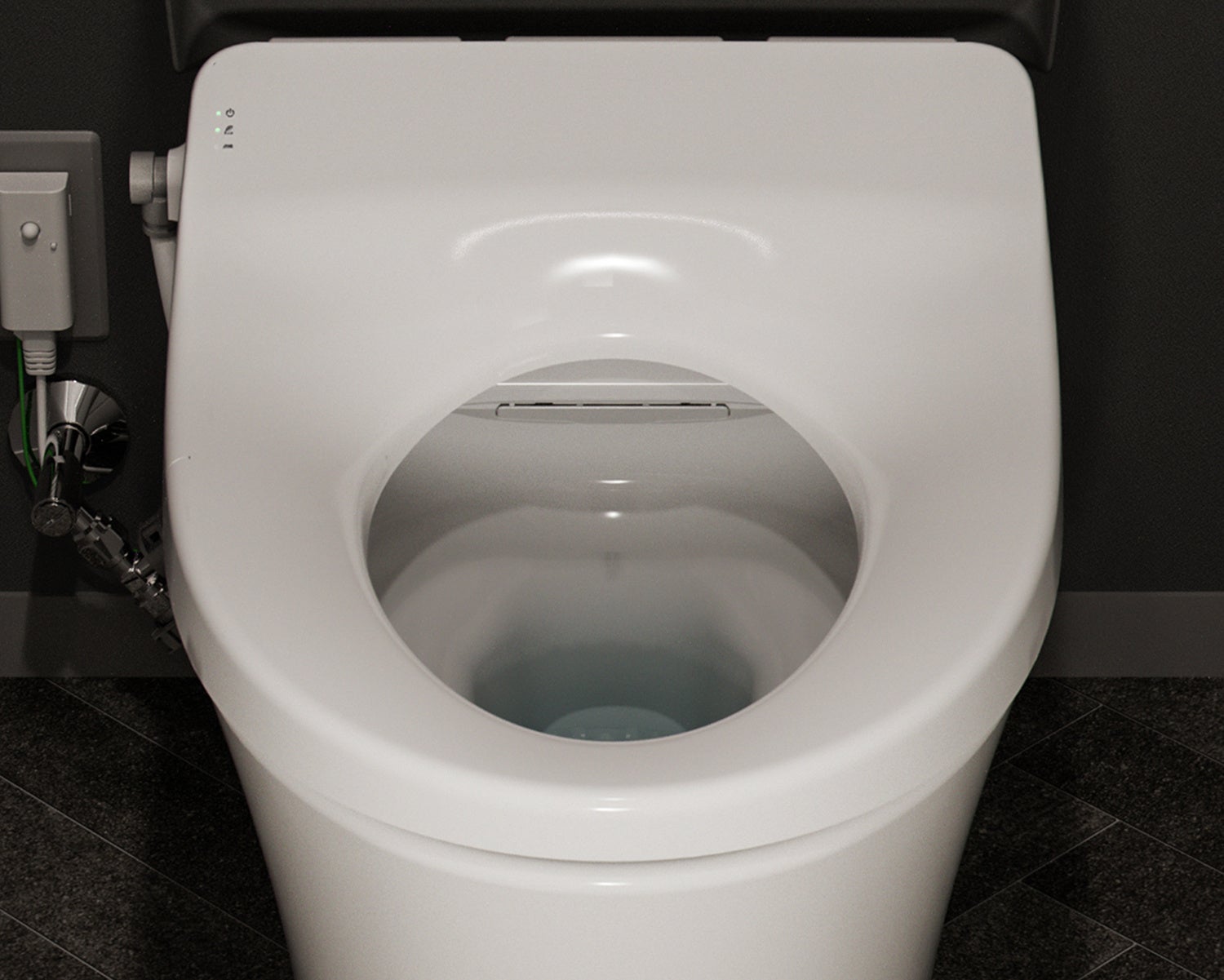 なめらかな曲面の1枚の大きなフタが上質な雰囲気を演出します。また、便座は後ろまでひとつながりで、拭きやすいデザインです。便フタと便座共に、シンプルを極めたスタイリングのシャワートイレです。