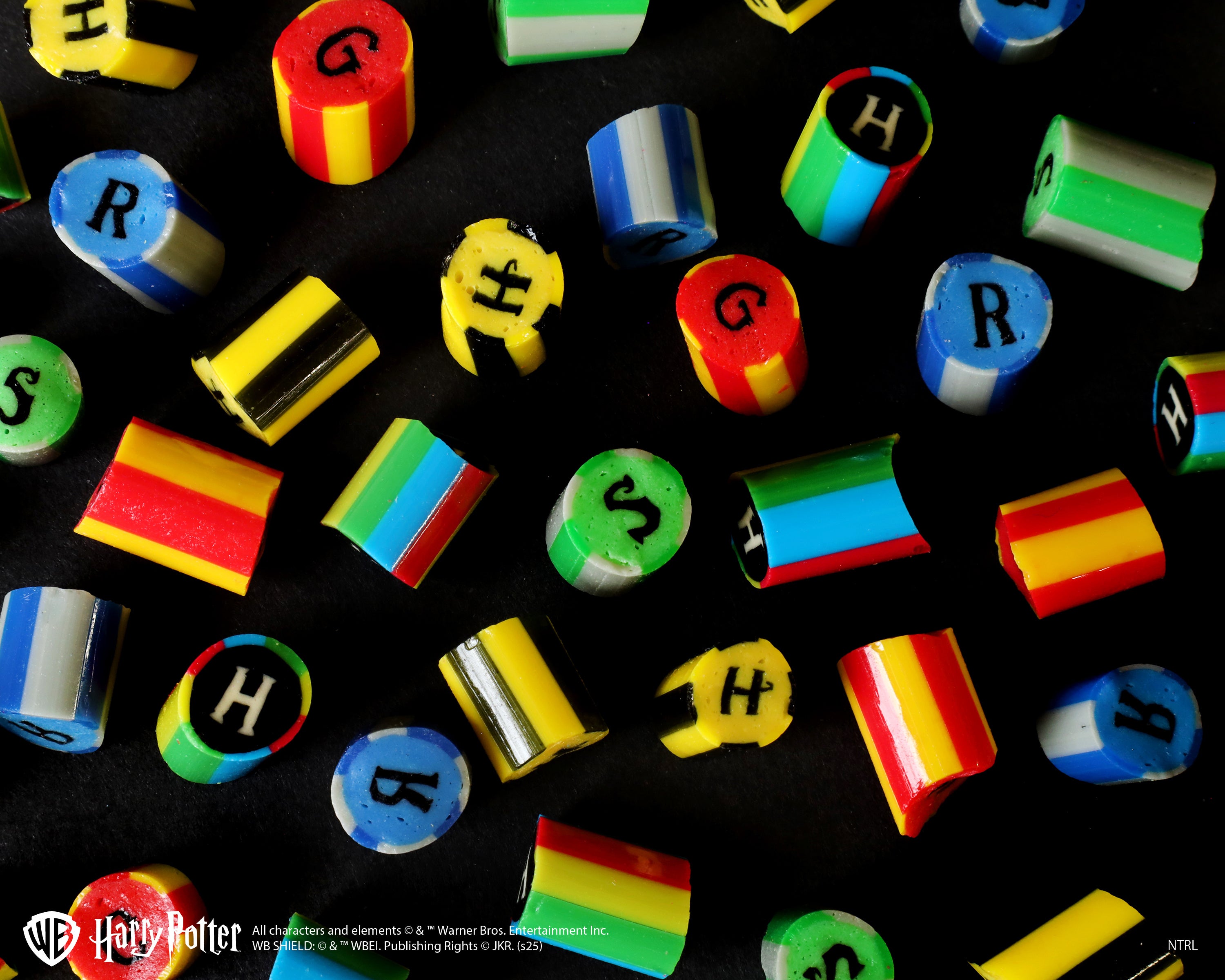 ホグワーツの4つの寮をイメージした、カラフルなキャンディミックス。それぞれの寮を象徴するカラー(赤・青・緑・黄)と、アルファベット(G・R・S・H)をデザインしました。寮ごとの個性をイメージに合わせたフレーバーで、遊び心あふれる味わいをお楽しみいただけます。ひと粒が小さく食べやすいサイズで、見た目も楽しいキャンディです。