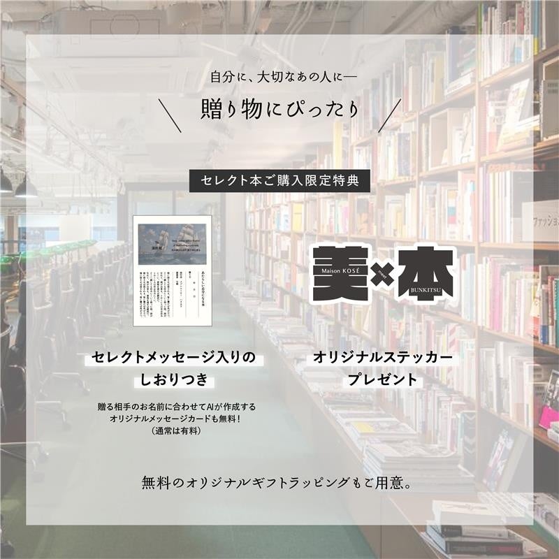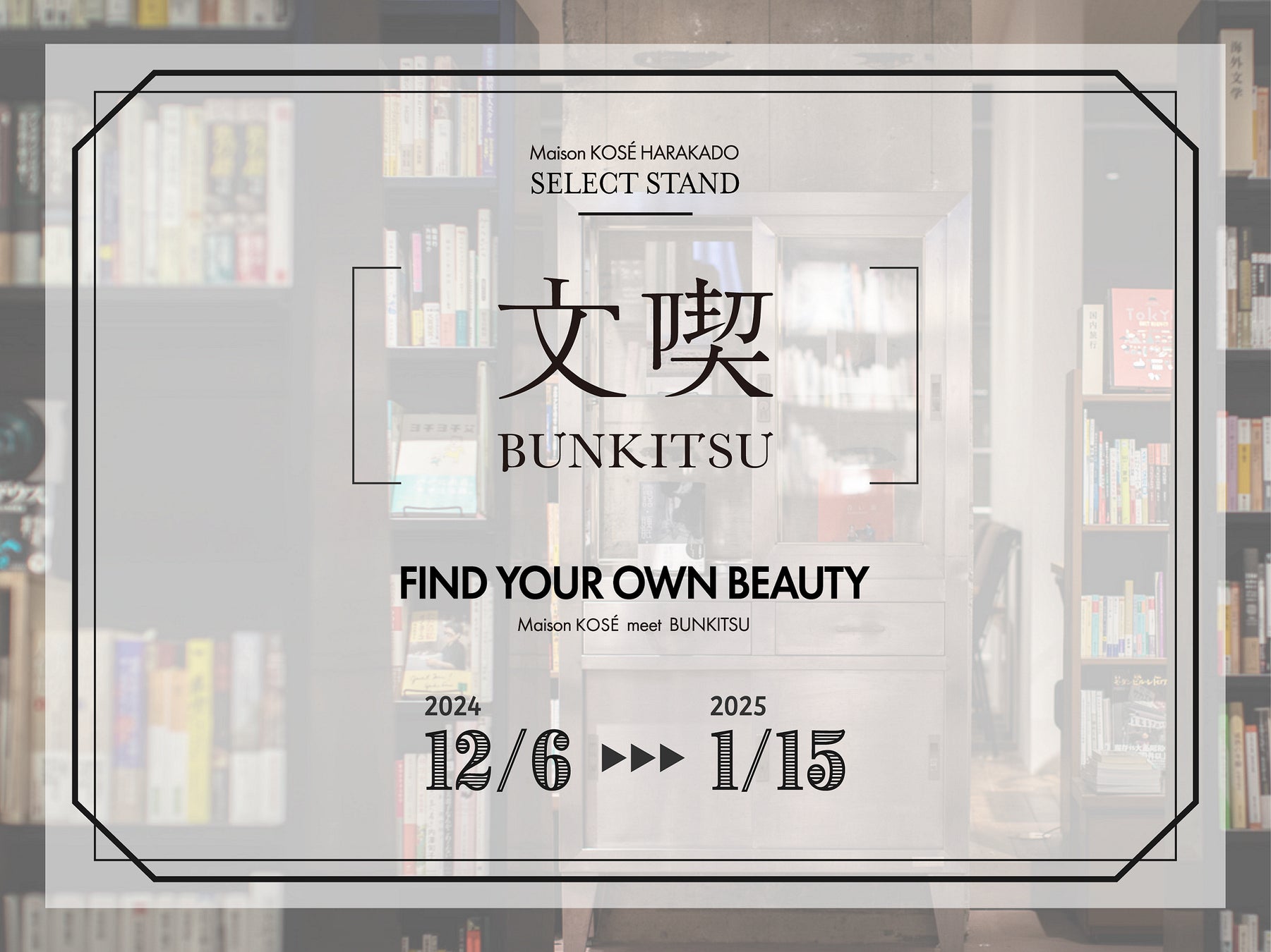 今回のキャンペーンは、“本と出会うための本屋”文喫が、『SELECT STAND』の 12 月のクリエイターとして、「Maison KOSÉ」とのコラボレーションで展開するものです。