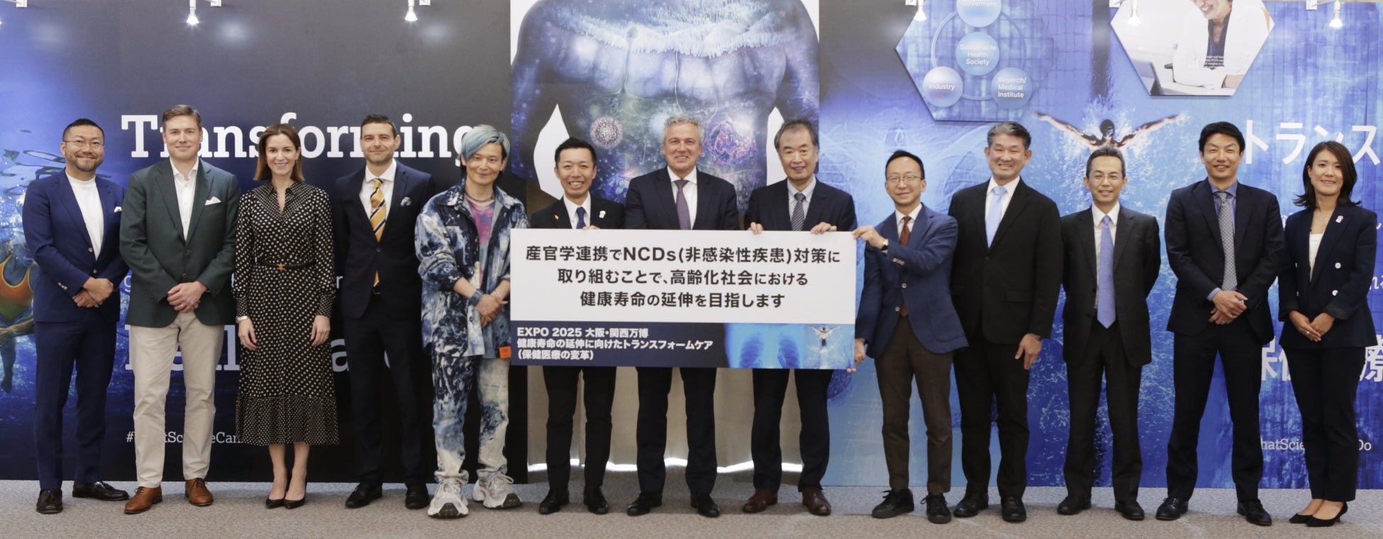 この度、大阪・関西万博を通じて、日本や世界が直面する高齢化やNCDsの増加を含む患者さんの満たされていないニーズ等の医療課題に対して、産官学連携を含めた様々なステークホルダーとの協働を通じて、保健医療の変革を推進します。下記をはじめとするソリューションを共有することで、新薬の創出をはじめとするあらゆる分野で行うすべての活動におけるイノベーションを通じて「サイエンスの限界に挑み、患者さんの人生を変える医薬品を届ける」というミッションを全うすると共に、日本の何千万人もの患者さんのアウトカムの改善、健康寿命の延伸に貢献してまいります。