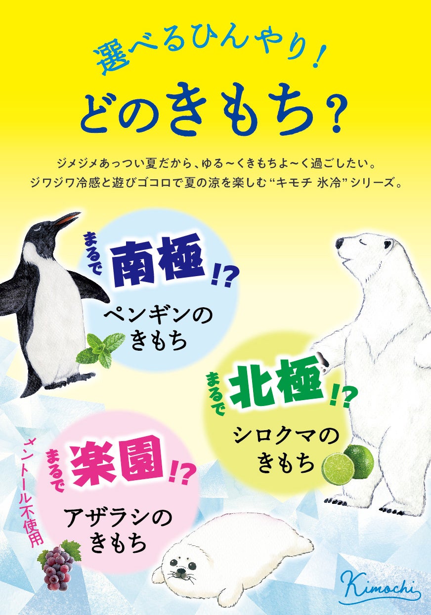 年々厳しさが増し長引く日本の夏。2026年は昨年同様暑さの到来が早く猛暑となる可能性があり、厳しい暑さへの対策が必要と言われています。『キモチ氷冷』シリーズは、ペンギン・シロクマ・アザラシの“きもち”になるようなユニークな冷感コンセプトで、ひんやりレベルや使用シーンで選べる幅広いラインアップを展開。通勤・通学に、運動やレジャーに、おうち時間に。日常からレジャーまで幅広いシーンで快適な夏をサポートします。